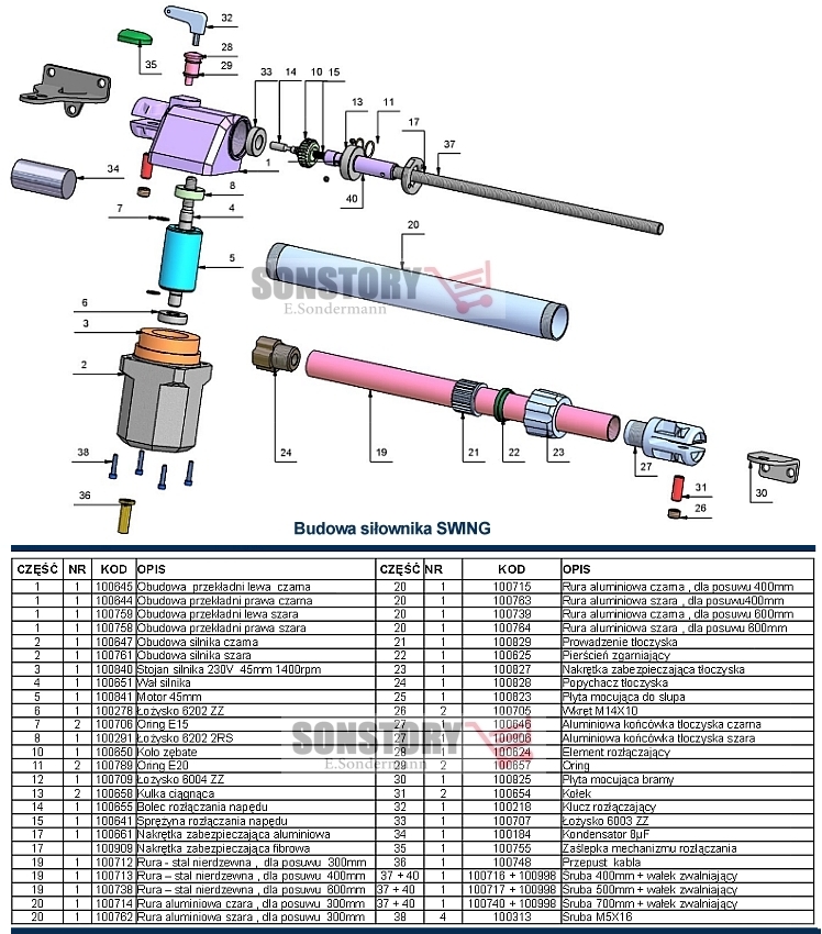 В комплект входять кронштейни для кріплення приводу до стійок і стулок воріт. Чітка інструкція з монтажу та експлуатації (польська мова). Установку має виконувати кваліфікована особа.