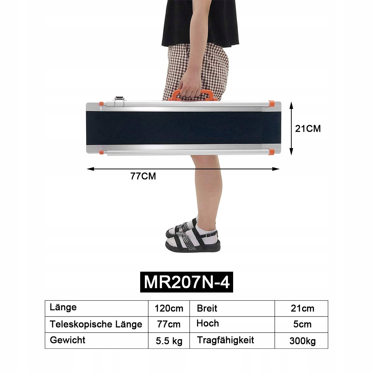 Навантажувальна рампа проти ковзання, регульована портативна алюмінієва телескопічна рампа для інвалідних візків для сходів і перешкод. (120 см x 21 см x 5 см)
