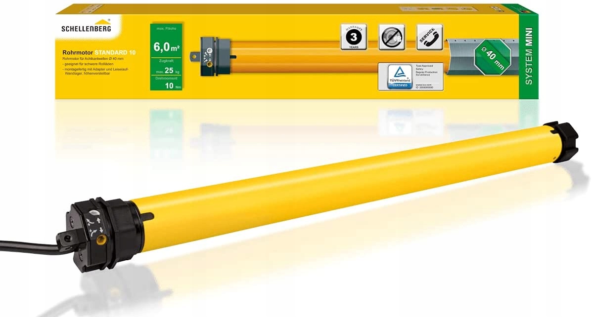 - назва товару: стандартний двигун для рольставен Schellenberg 20110 Mini 10 Нм, механічне регулювання кінцевого положення, трубчастий двигун для валу 40 мм, площа ролет до 6 м², комплект із опорою для стін