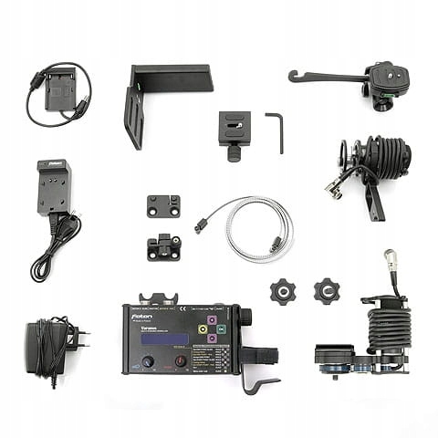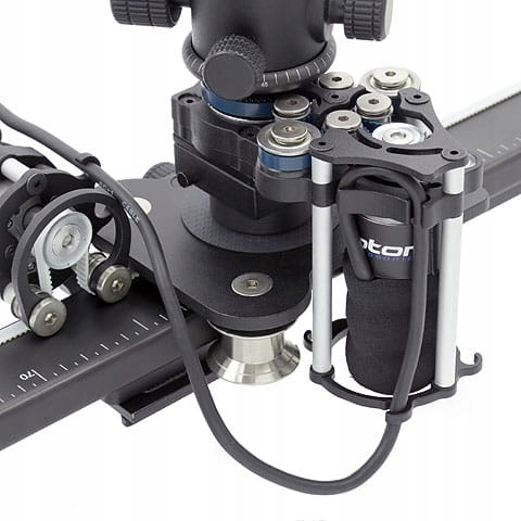 Просунутий, двомоторний комплект приводу для слайдерів Kameleon 64, 94, 130, 200 см. Це дозволяє робити надзвичайно плавні та динамічні кадри в русі. Програмований контролер точно керує роботою двигунів і - після підключення відповідного кабелю - затвора камери в режимі сповільненої зйомки.