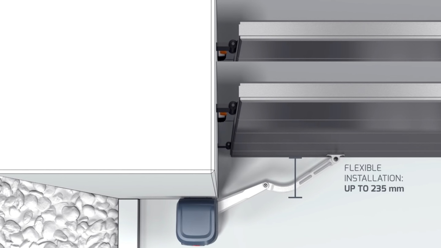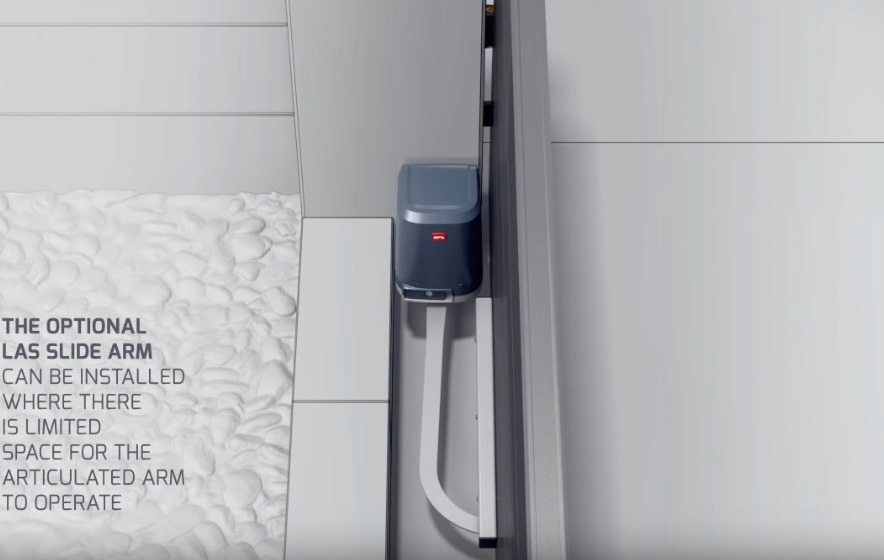 Якщо у відкритому положенні недостатньо місця з боків для складного важелі приводу, можна використовувати ковзний важіль (опція, не входить у комплект). поміщається всередину приводу