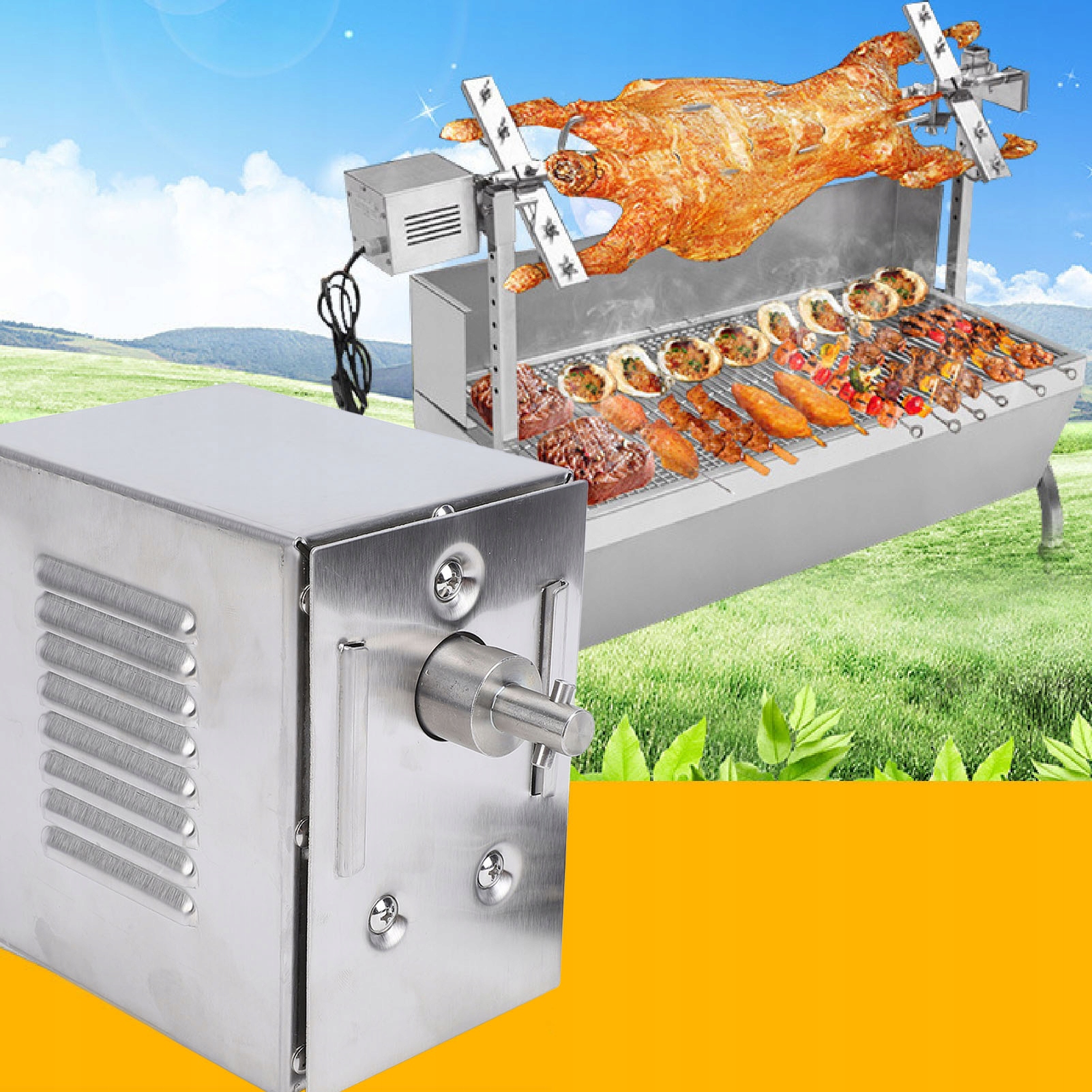 3. Універсальний гриль: електродвигун гриля може надійно смажити цілу баранину та підходить для різноманітних продуктів, таких як молочне порося, курка та баранина, задовольняючи ваші різноманітні потреби гриля.