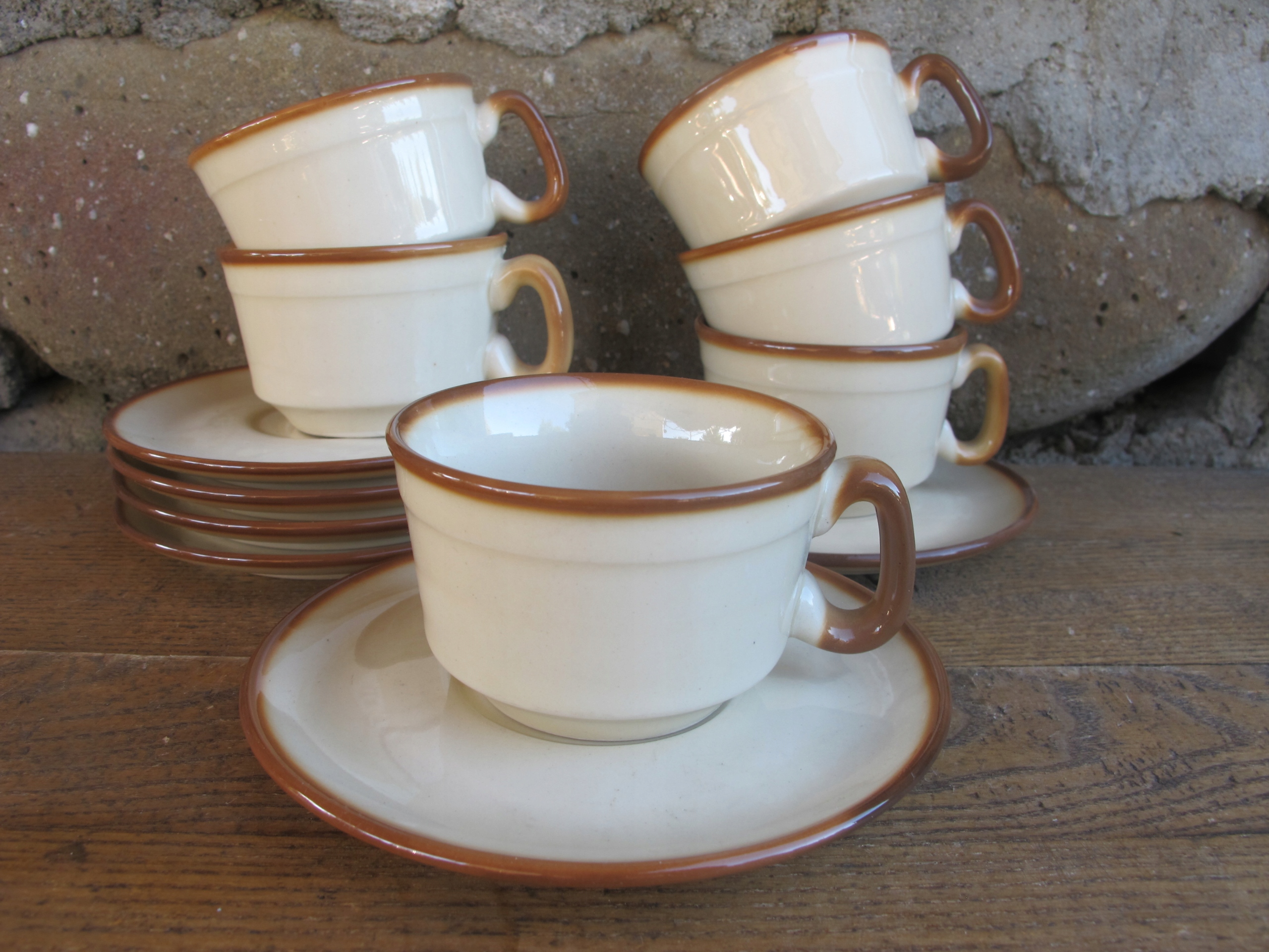 Я продаю набір з 6 чашок з тарілками еспресо, виготовленими з порцеляни під час польської народної республіки, і виробляються порцелітними рослинами "Pruszków"