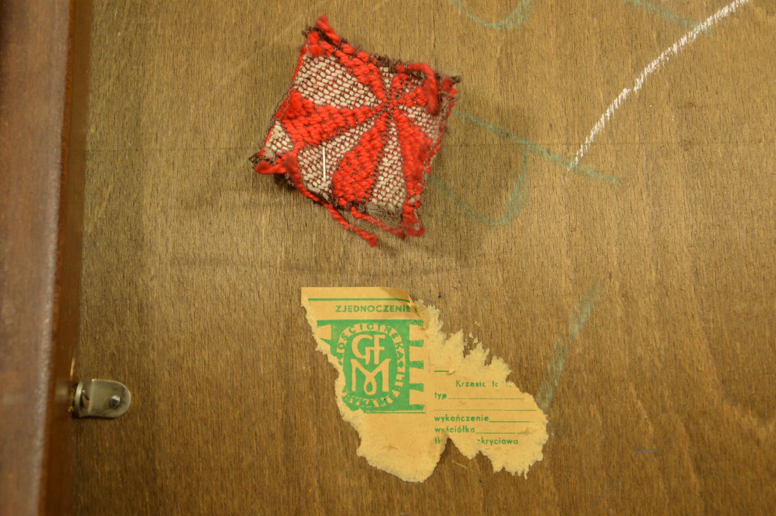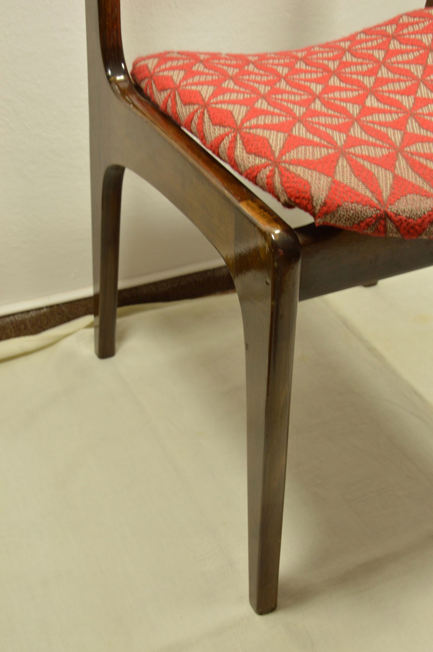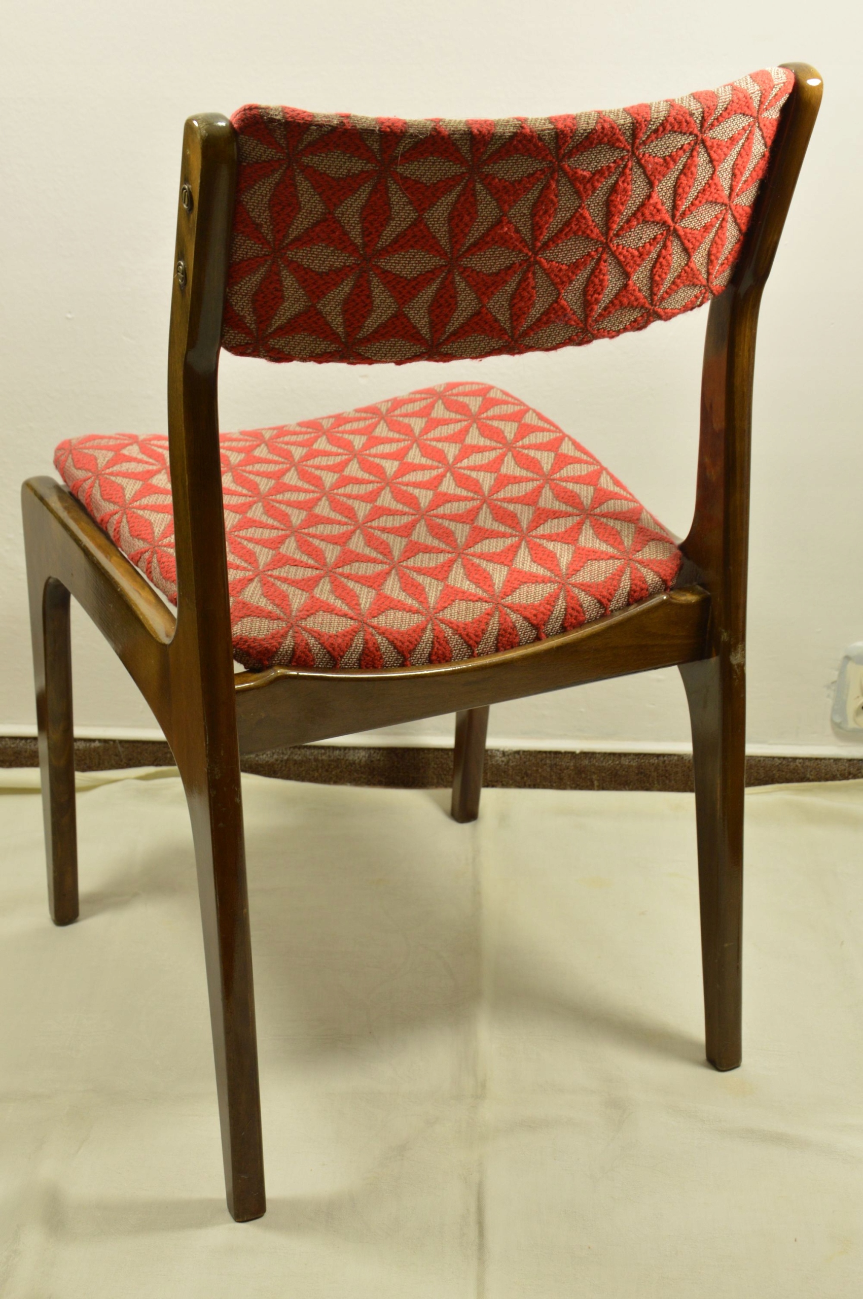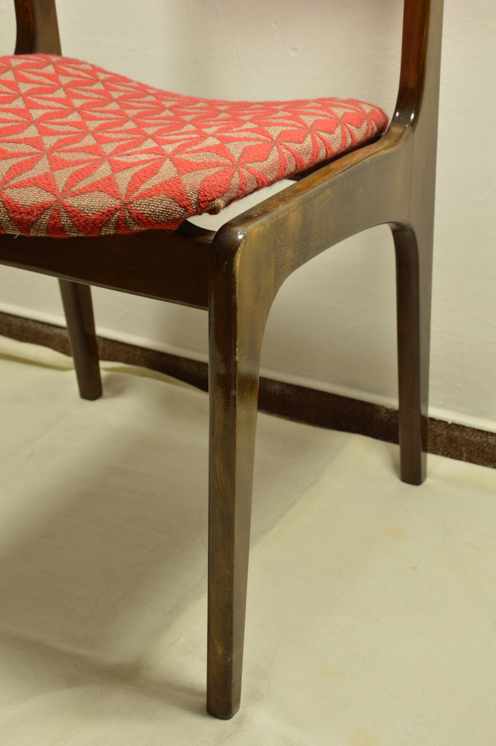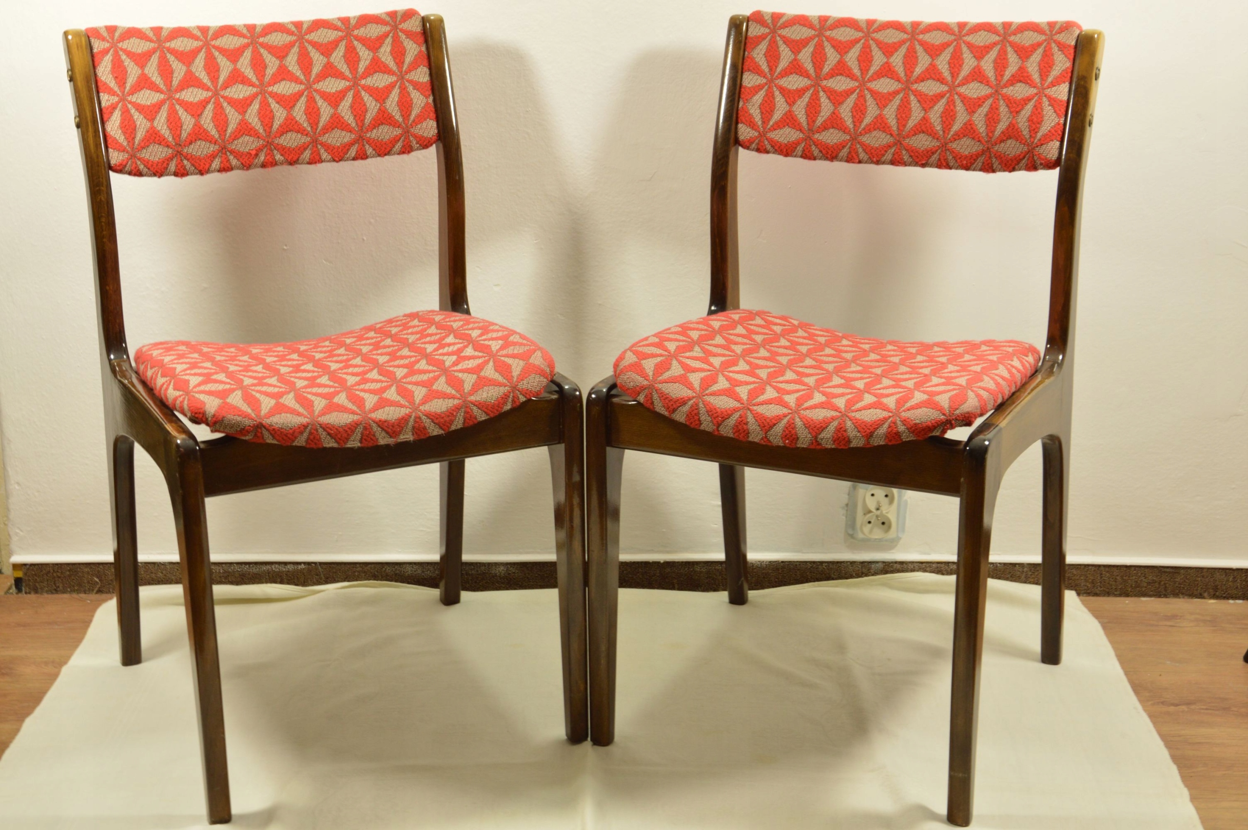 надзвичайно красиві, оригінальні стільці GFM, розроблені Едмундом Хома. Стільці ідеально збереглися, повністю оригінальні. Оббивка збереглася в дуже хорошому стані з зразком. Прості, повні стільці з видимими незначними слідами використання. Два шматки в наборі.