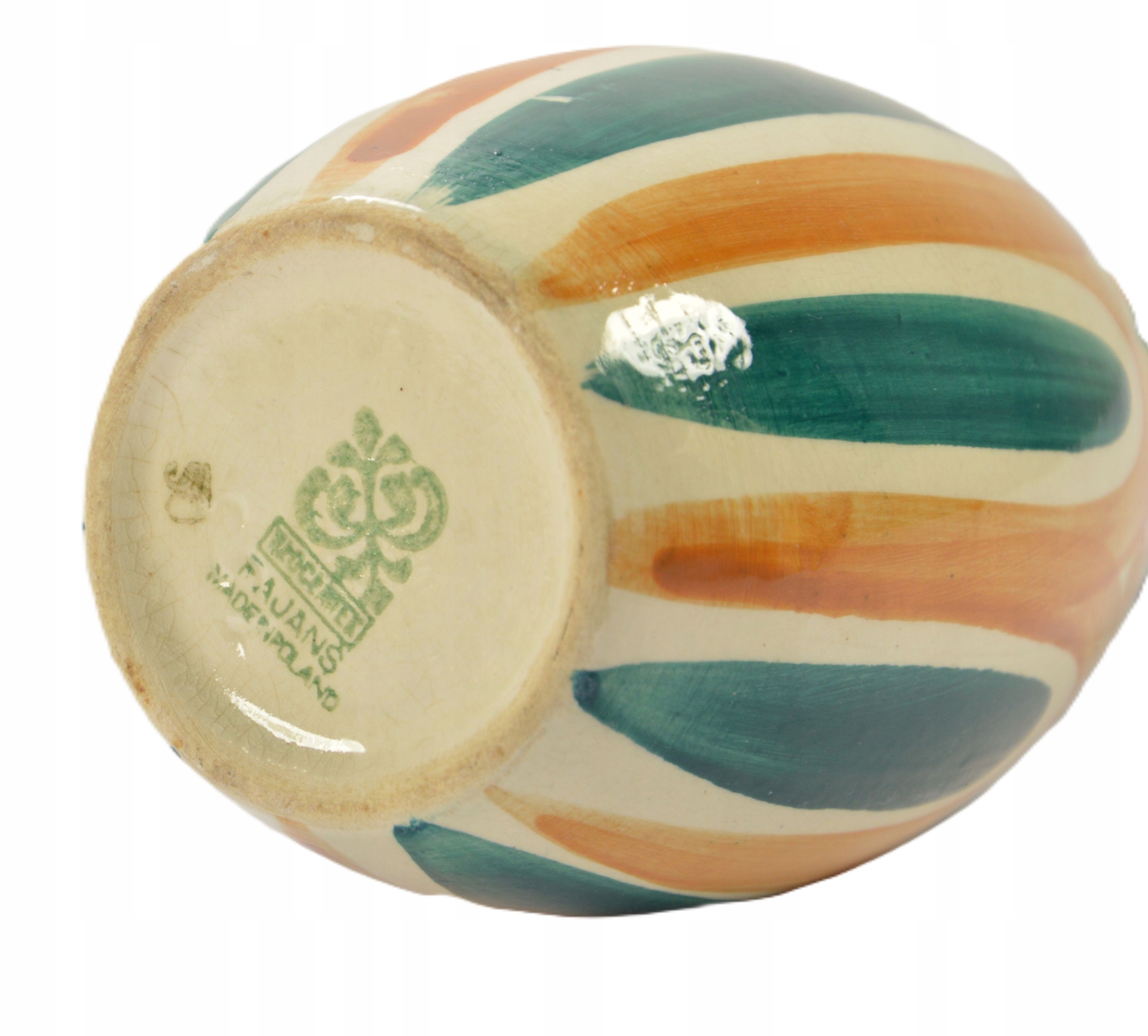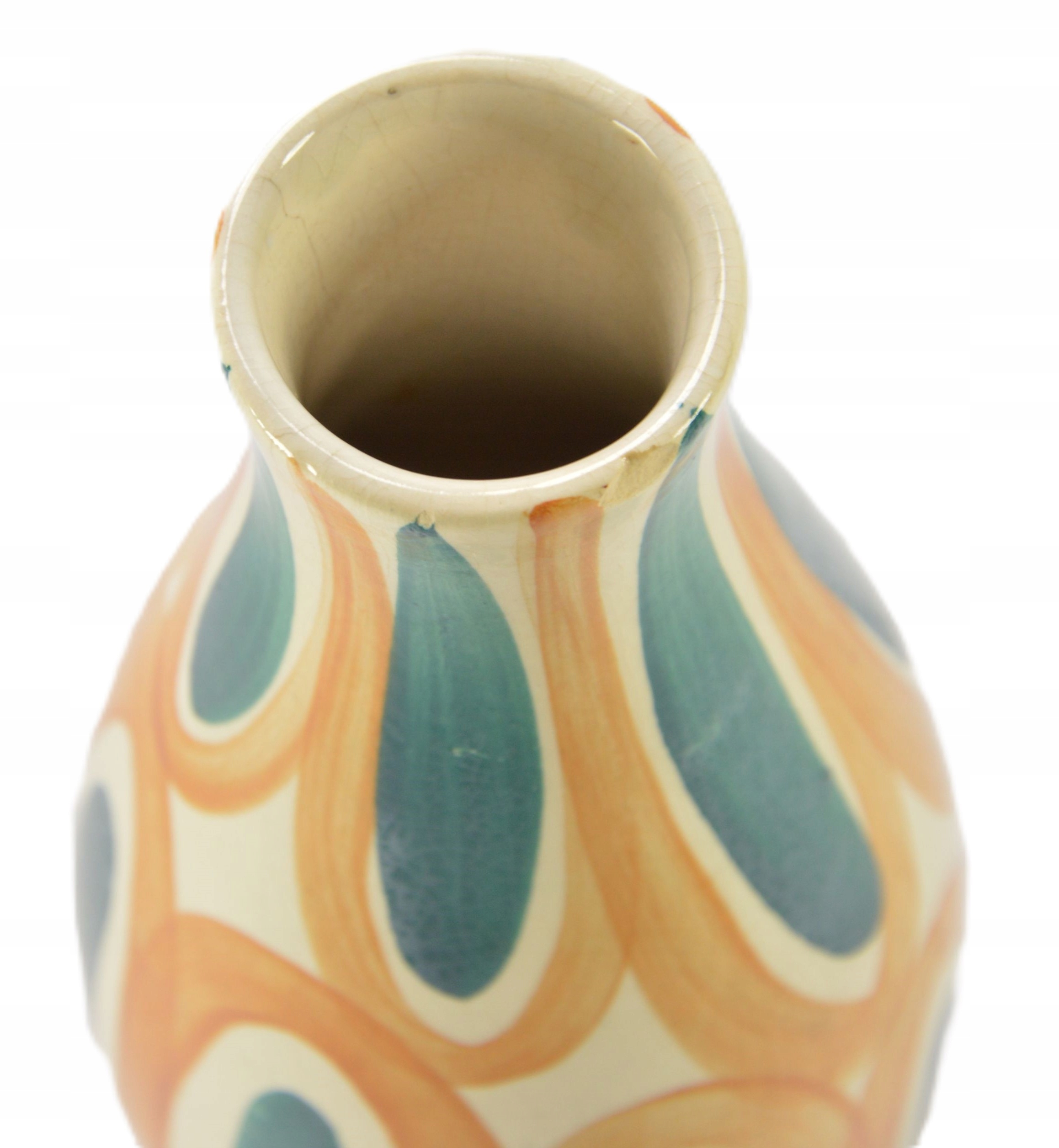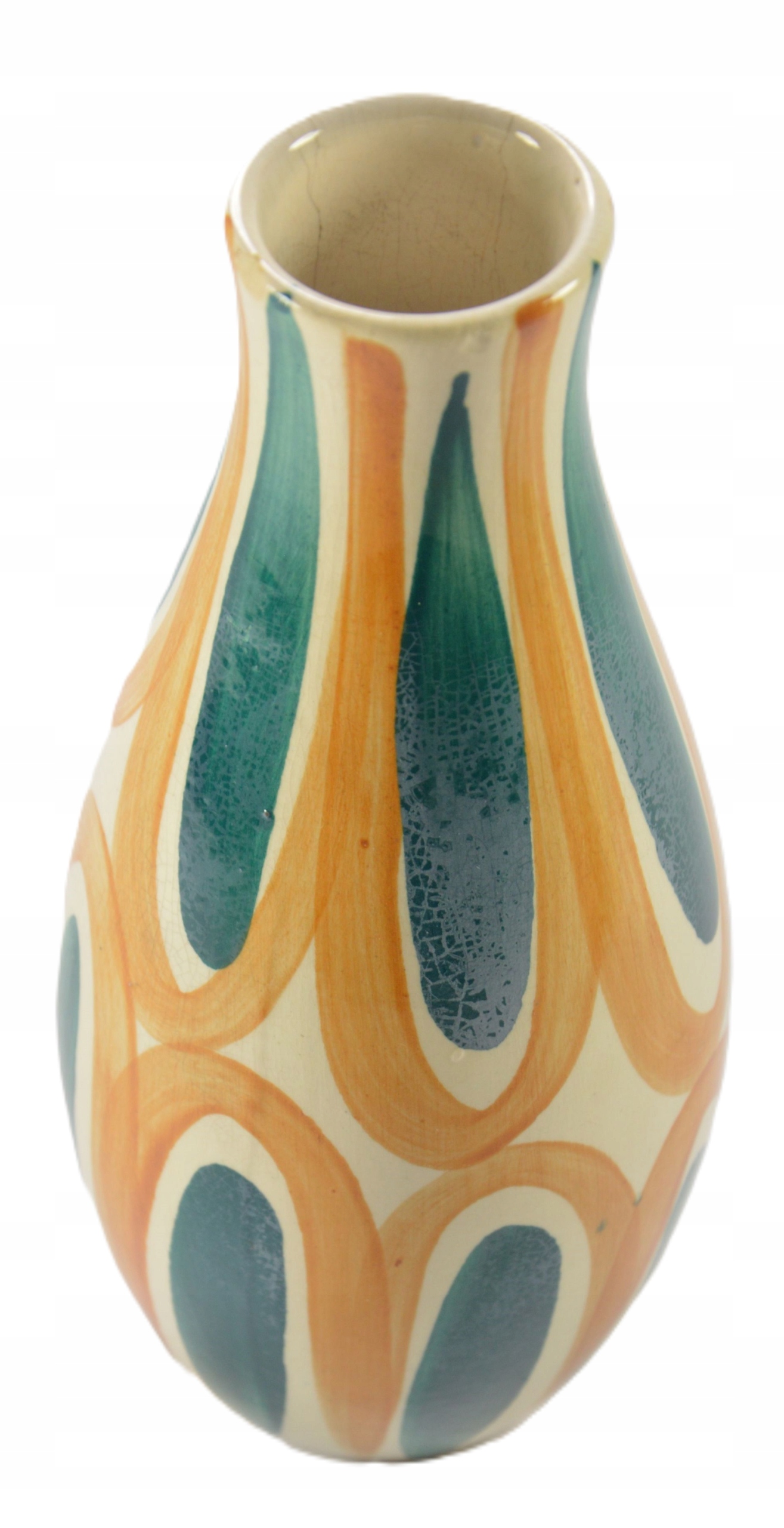 Прекрасна, оригінальна ваза Wasucławek з картиною в стилі Пікассо. Ваза, зроблена з фаїенса в 1960 -х роках, виглядає чудово. Видимий невеликий осколок на інсульті та тріщин картини.