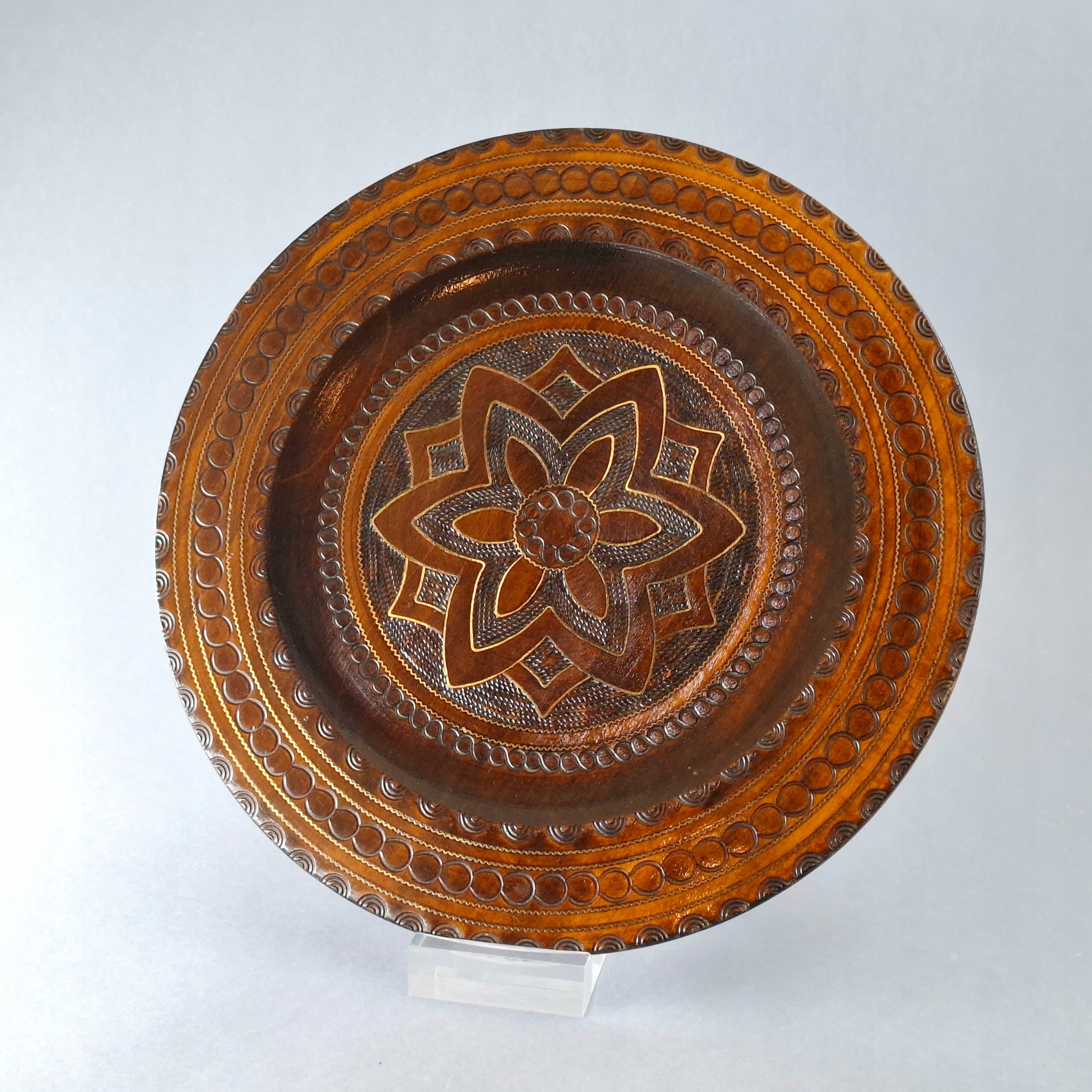 PRL КРАСИВА ДЕРЕВ'ЯНА НАРОДНА ТАРІЛКА, ДЕРЕВО З ВРАЖЕННЯМ ЛАТУНІ