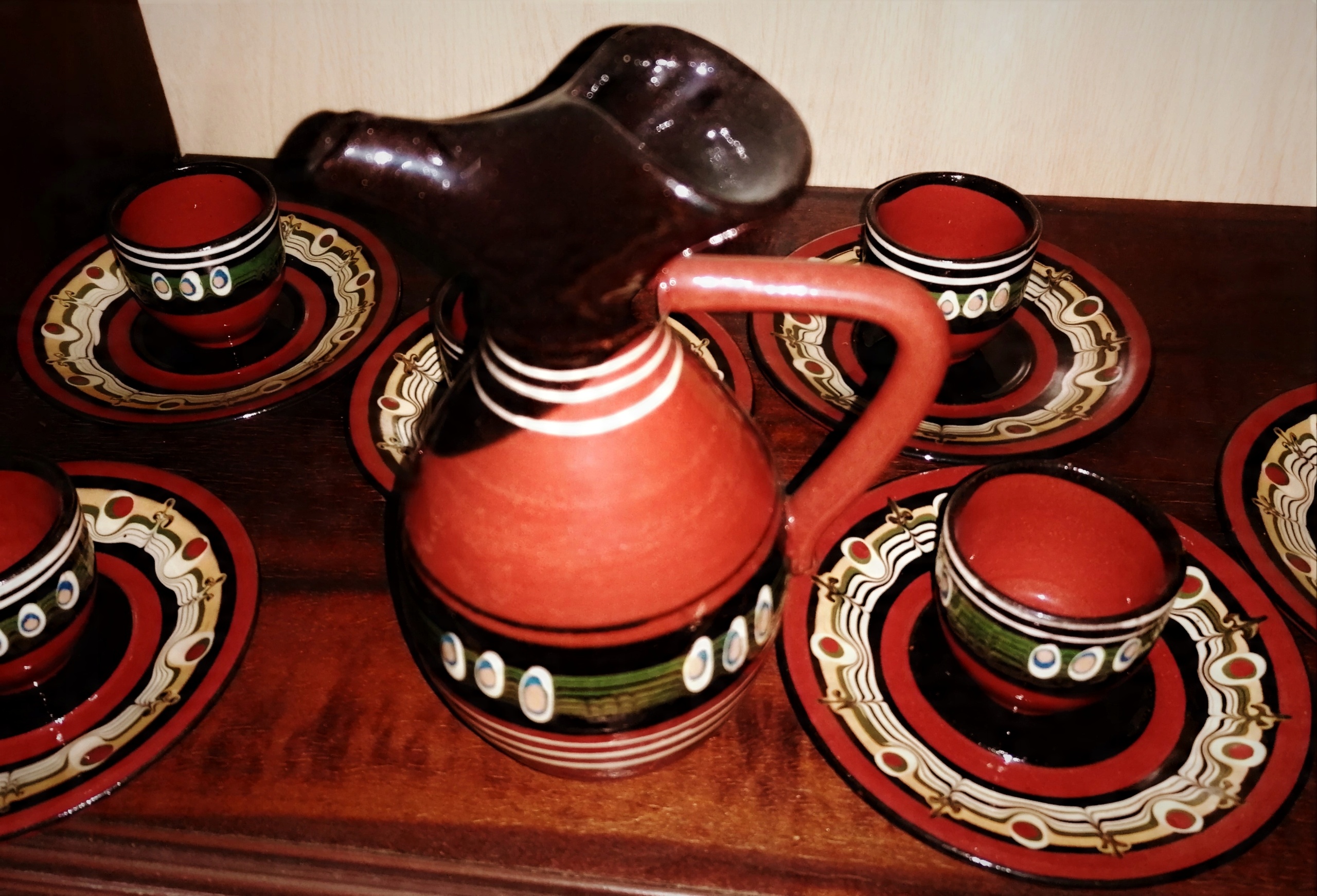 Надзвичайний, унікальний керамічний набір із міста ТРОЯН у Болгарії, ручної роботи, кераміка ручної роботи.