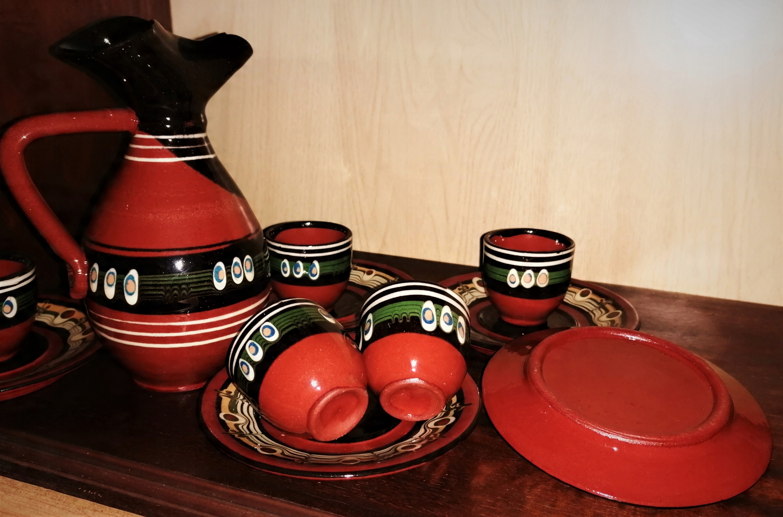 Столовий набір 1960-х років, виготовлений із випаленої червоної глини.