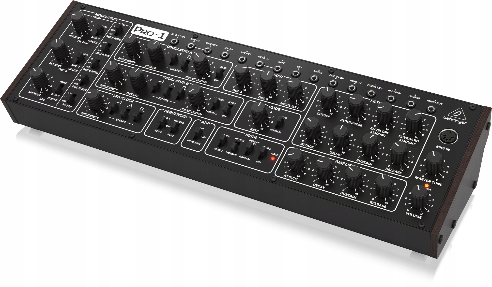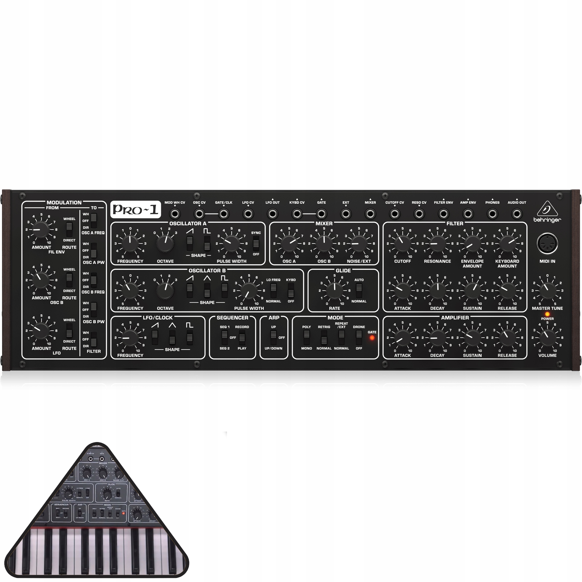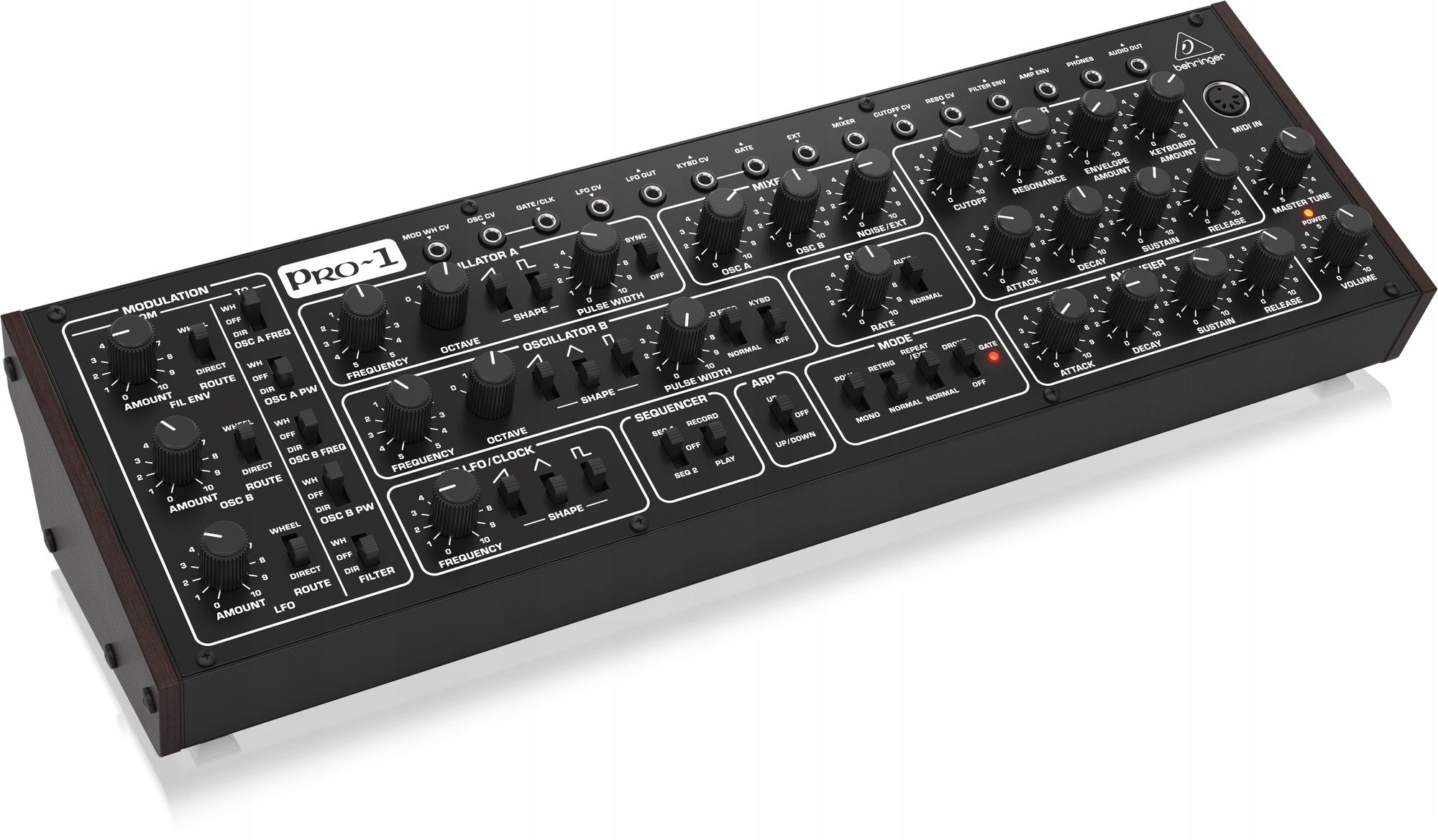 Behringer Pro-1 -analog Synthesizer у форматі Eurorack з подвійним VCO, 3 одночасними формами хвиль, чотириступінчастими VCF, основними характеристиками модуляції: