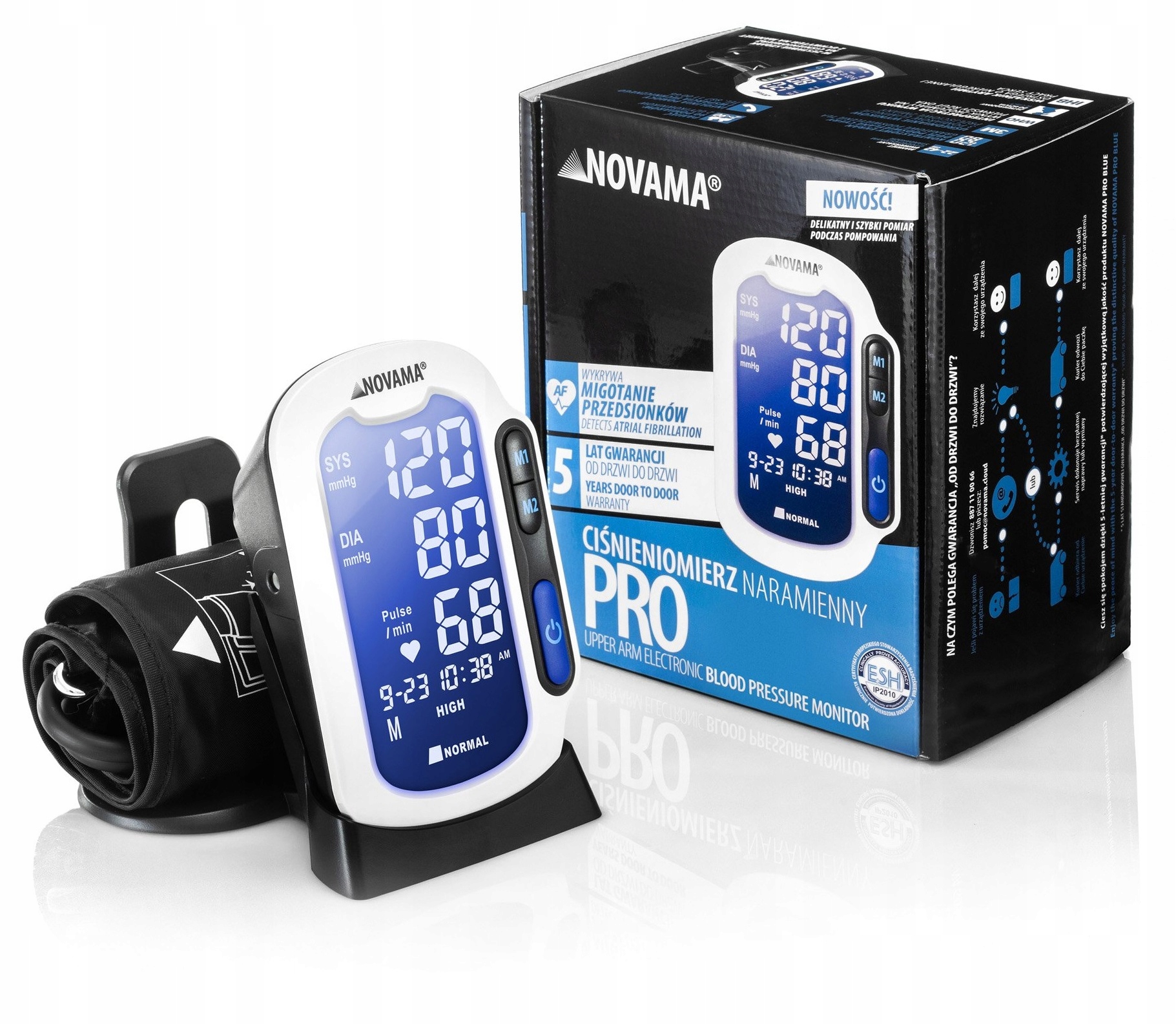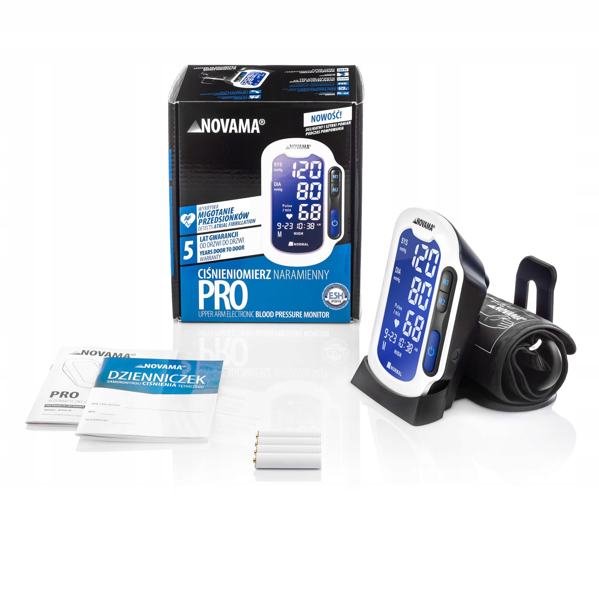 Медичний пристрій, який автоматично вимірює систолічний і діастолічний артеріальний тиск і частоту серцевих скорочень за допомогою осцилометричного методу вимірювання. Novama PRO дозволяє раннє виявлення нерегулярного серцебиття та пульсу.