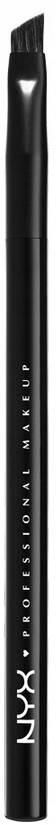 Pro Angled Brush - 19 Nyx Professional Makeup Brands. пензлик для макіяжу. Зроблено з хорошої якості синтетичної щетини, не дратує шкіру. Обіжна головка дозволяє точно відзначити та наповнити брови притисованою або кремовою тінню. Крім того, він також ідеально підходить для малювання лінії підводки для очей. Ціле було розміщено на дерев’яній, лакованій ручці та чорному матовому гнізді.