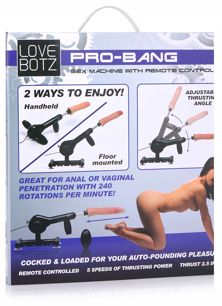 Цей пробанг-секс пропонує два захоплюючі способи гри! Ця машина пропонує потужний поштовх у легкій та портативній формі - він може бути встановлений на плоских, гладких підлогах, щоб мати хороше соло або з вашим коханим. Ця портативна штовхаюча машина пропонує 5 задовольняючих швидкостей - зупиніть свого партнера та відпустіть її, а потім збільшуйте інтенсивність, використовуючи легкі елементи керування - розташовані на самій машині або за допомогою приєднаного бездротового пульта дистанційного керування.