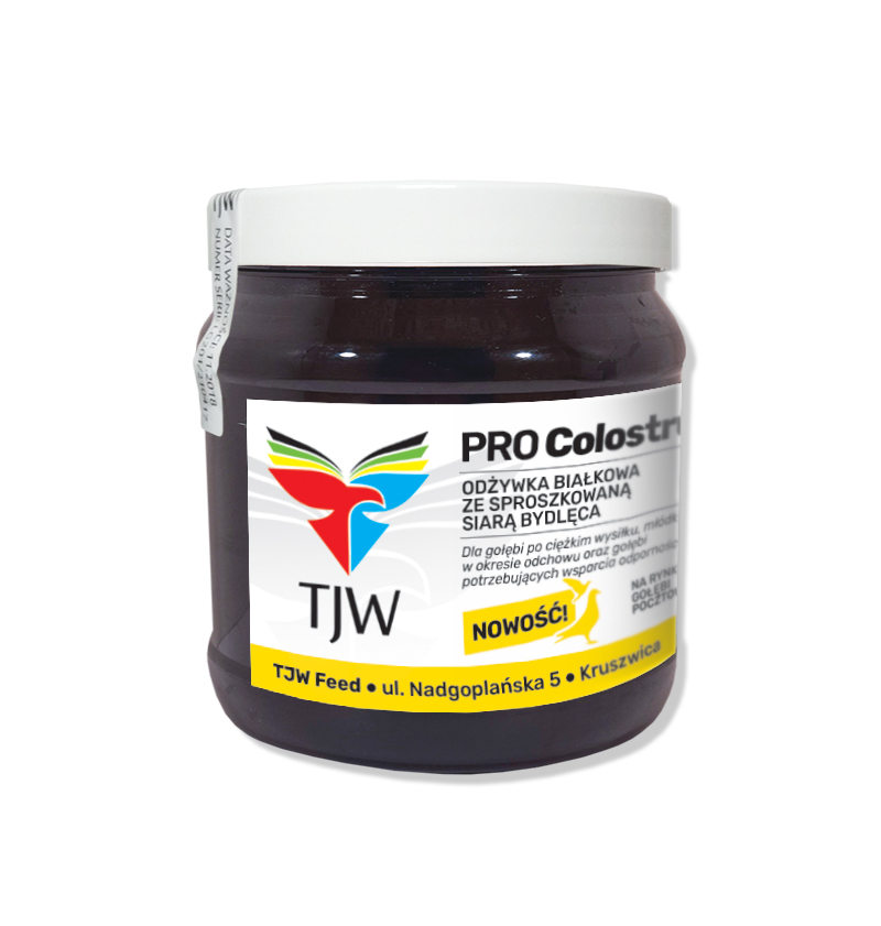 TJW PRO Colostrum 600g слід давати голубам, змішаним з TJW Omega Oil або TJW Aqua Amino в пропорціях