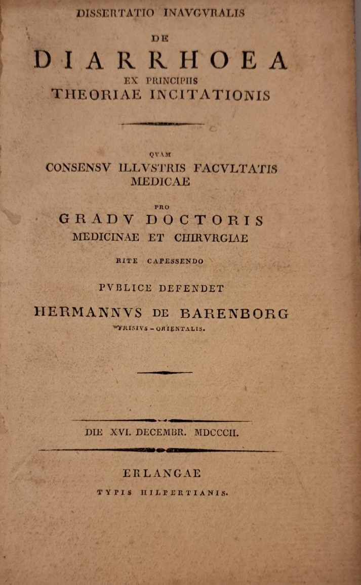 Doctoral dissertation on the formation and treatment of diarrhea from the 16th December 1802, in Latin