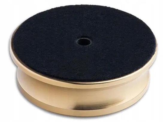 Затискач для вінілових платівок із міцної латуні, що забезпечує ідеальне прилягання платівки до поверхні диска вертушки.