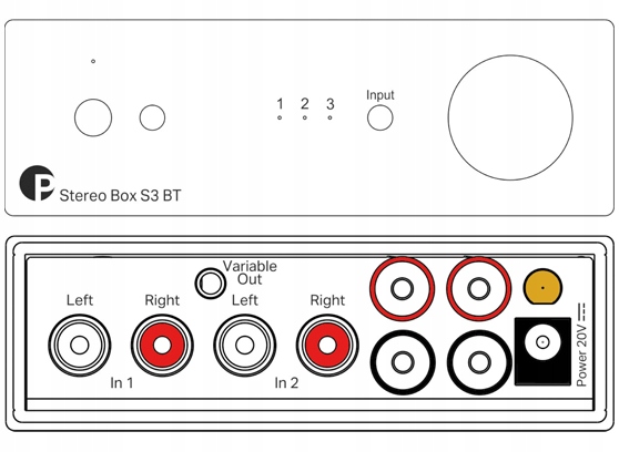 На додаток до пари аналогових входів RCA, вбудований підсилювач Stereo Box S3 BT оснащений додатковим бездротовим входом Bluetooth 5.0, підтримка aptX HD (24 біт/48 кГц).