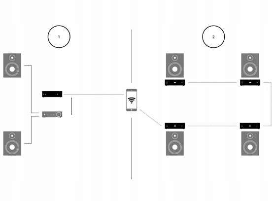 Також можна підключити два пристрої, щоб створити стереосистему з окремо призначеними пристроями для лівого та правого каналів.