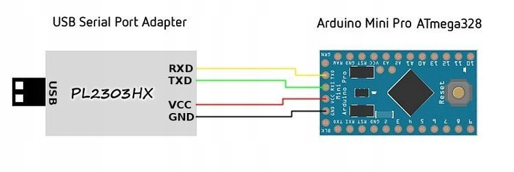 Мікроконтролер має попередньо завантажений завантажувач, тому для програмування вам потрібен лише UART-програматор, наприклад універсальний модуль перетворювача з виходом USB - UART RS232.