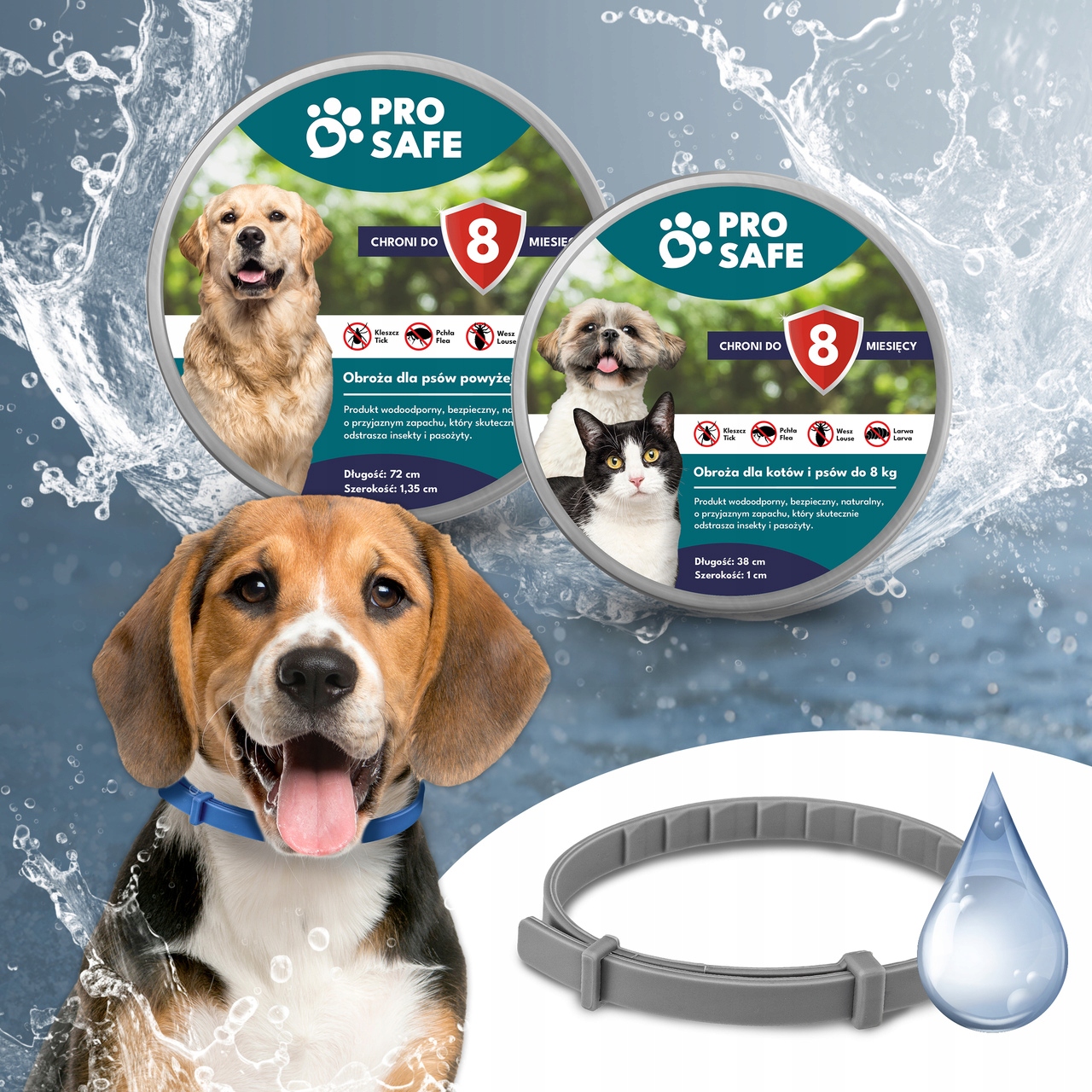 PRO SAFE Нашийник проти кліщів, бліх, СОБАКА понад 8 кг, АНТИКЛІЩОВИЙ, 72 см