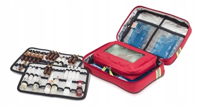Набір для професіоналів. Ідеально підходить як частина реанімаційного набору, рюкзака рятувальників або протишокового набору. Ви можете помістити в нього цілих 158 (різного об'єму) ампул! Додаткові кишені для ліків також дозволять мати під рукою блістери з таблетками, гель або настій. Ізотермічна внутрішня частина та гелева вставка дозволяють зберігати продукти при відповідній температурі. Ви можете від’єднати внутрішні стінки й таким чином отримати ще легший доступ до вмісту. Світловідбиваюча контрастна смужка покращує видимість і підвищує безпеку, як і застібки-блискавки. Місце для ідентифікаційного бейджа дозволить вам легко його позначити.