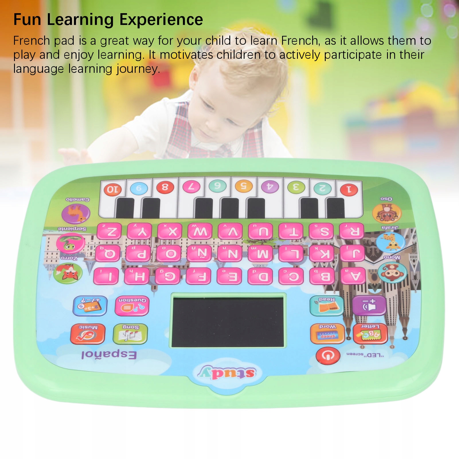 5. Суцільний матеріал: виготовлений із безпечного та твердого пластику, світлодіодна іспанська навчальна таблетка є міцною та безпечною для дітей. Компактний розмір 18x24x2cm робить його портативним та простим для навчання.