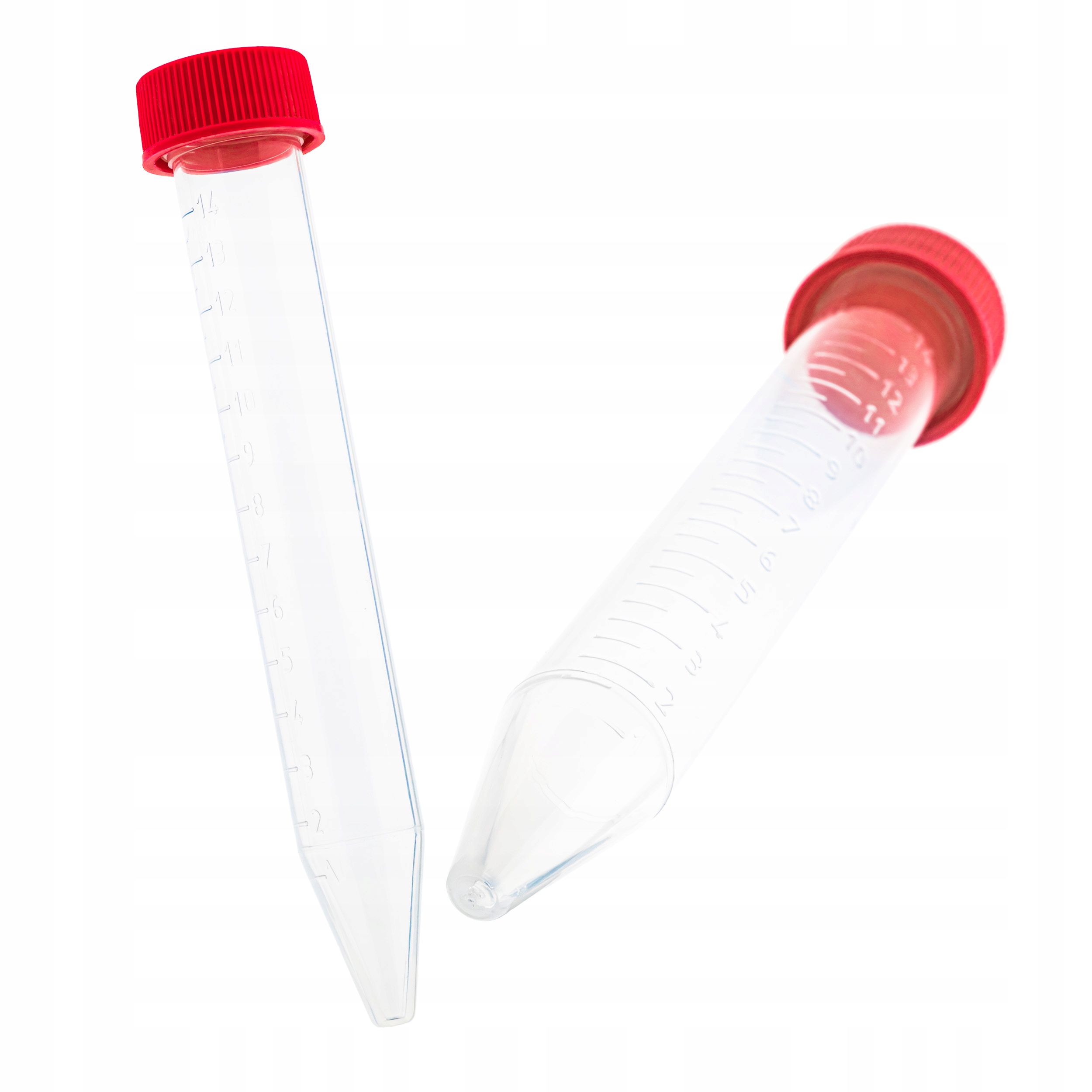 Стерильні конічні центрифужні пробірки типу Falkon 15 мл, упаковані насипом по 150 штук. Виготовлені з високоякісного прозорого поліпропілен. Стерилізовано радіацією. Його можна автоклавуватидо 121 C і заморожувати до -80 C. Поставляється з червоними кришками, які гарантують високу герметичність.