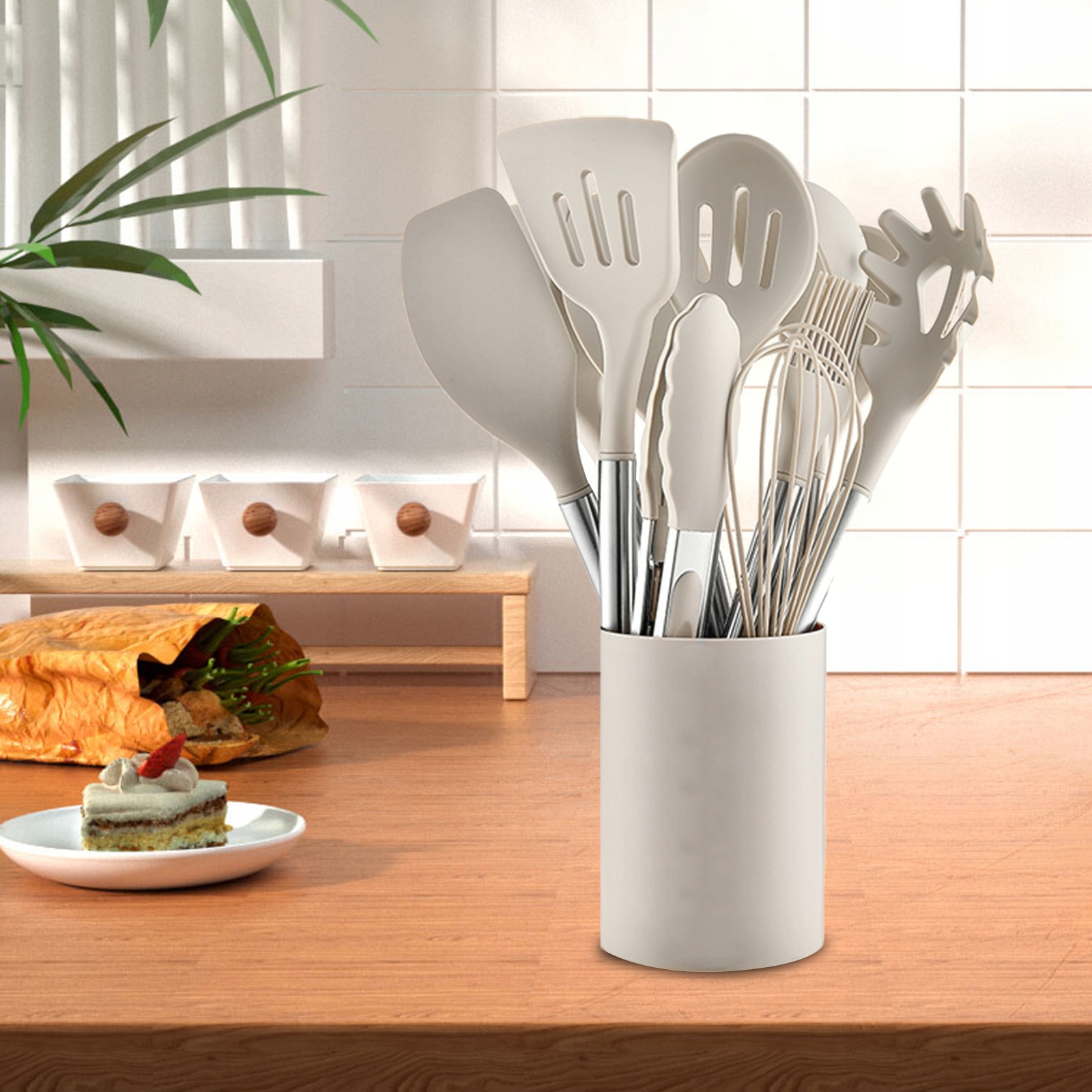 ✨Набір кухонного посуду з 12 предметів: включає лопатку, друшляк, скребок для тіста, шпатель, ситечко, ложку, ложку для макаронів, плоску ложку, силікон для віночка, пензлик для тіста, кухонні щипці та кухонний тримач для посуду. Добре обладнаний набір посуду для щоденних потреб у приготуванні їжі.