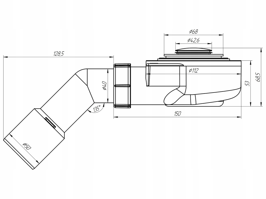 ✅ висота сифона з пробкою 68,5 мм