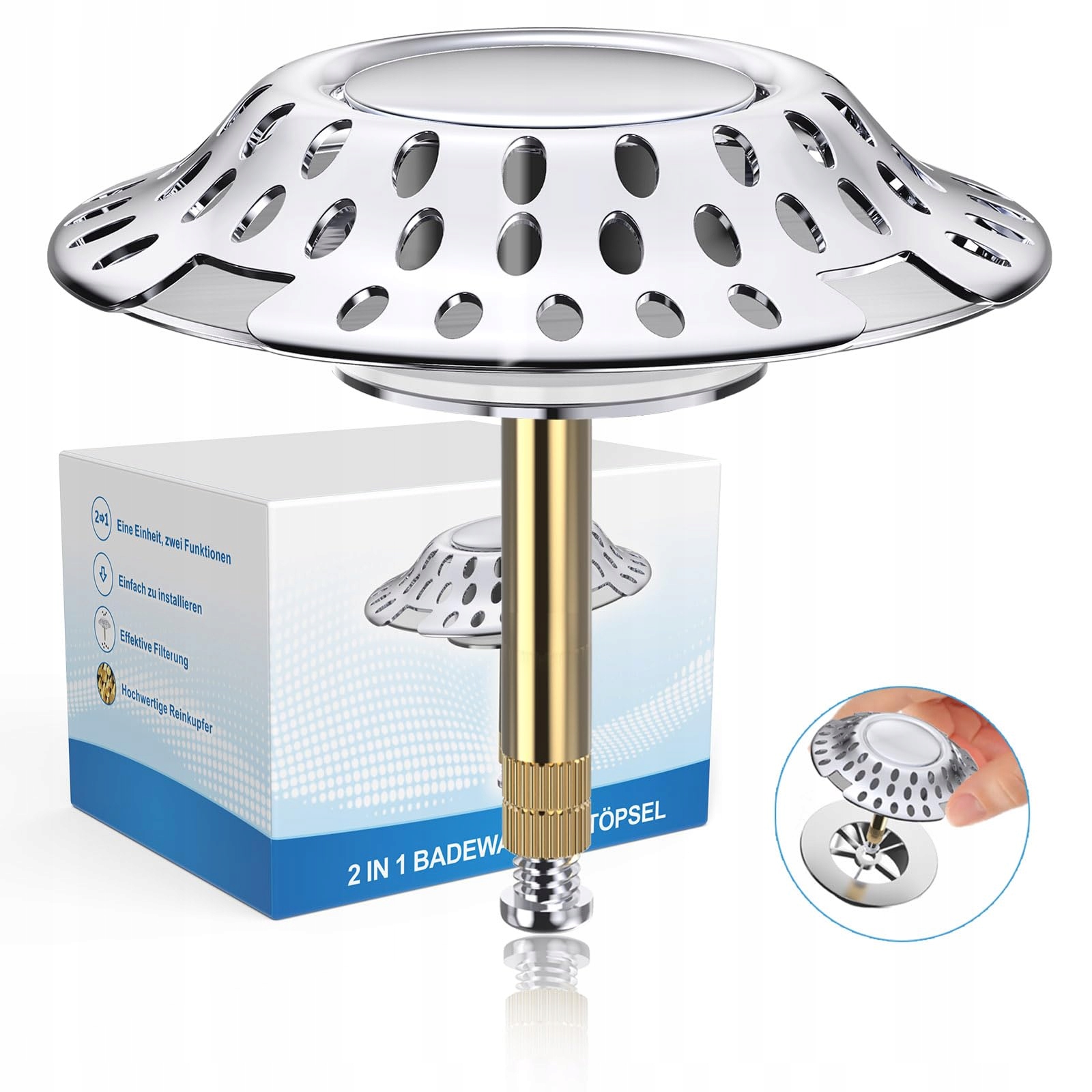 - Нова пробка для ванни виготовлена з високоякісної чистої міді та гладко полірованого хрому, який стійкий до іржі, тріщин і корозії.