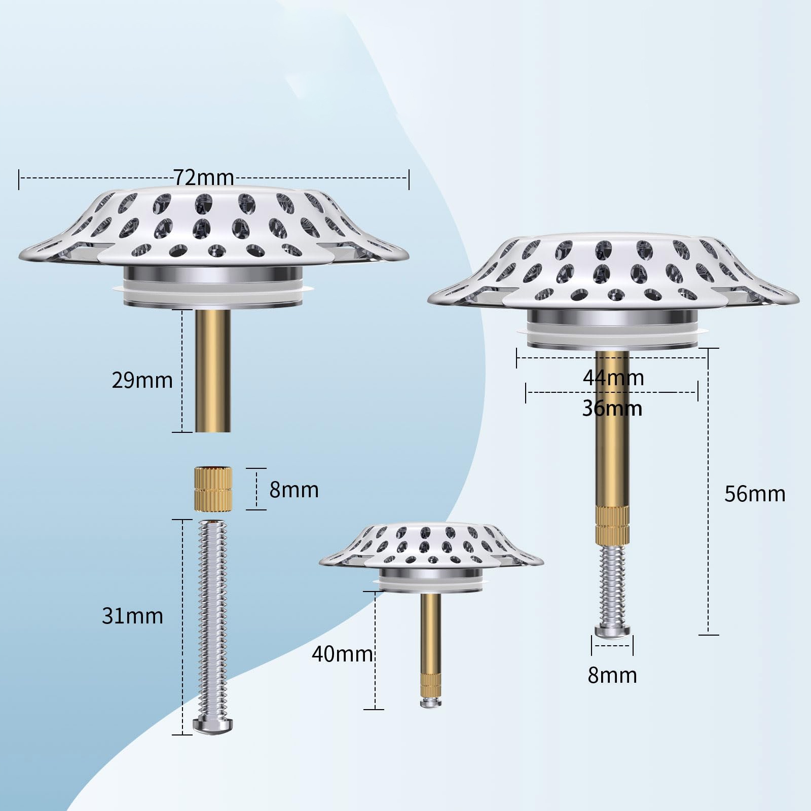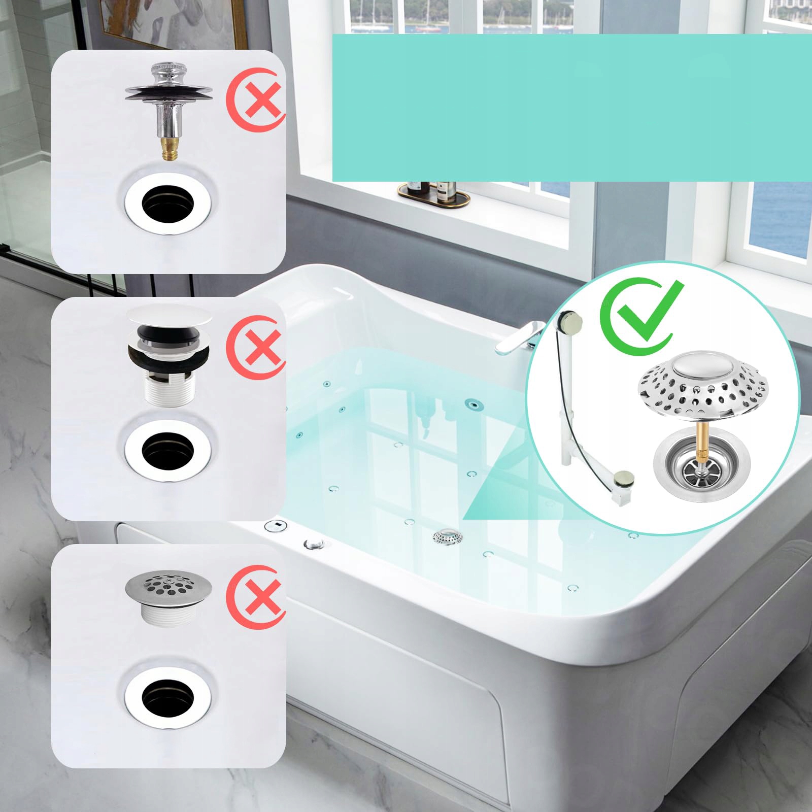 - Примітка: підходить лише для дротових зливних отворів для ванн із дренажними отворами діаметром 38- 44 мм, не підходить для душових кабін, умивальників і кухонних раковин.