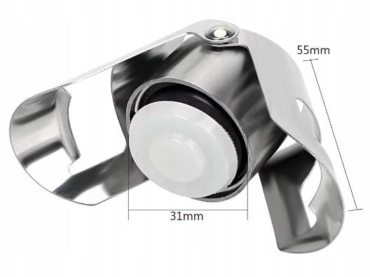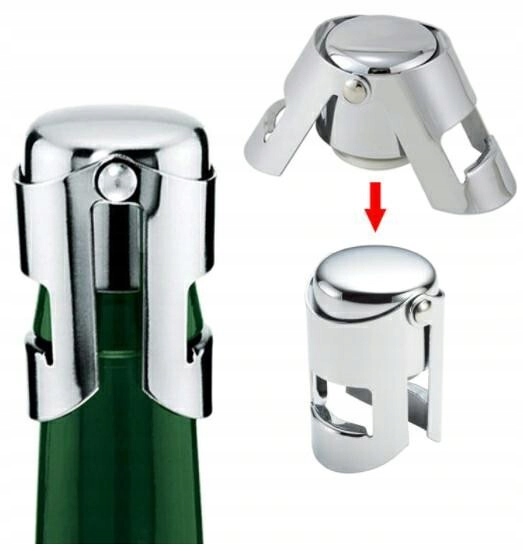Практичний, сталевий чаклук для шампанського. оснащений силіконовим накладкою, яке ущільнює пляшку.
