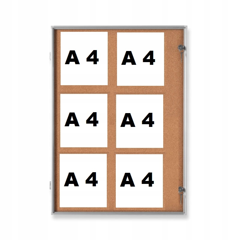Selprim рекомендує підвісний рекламний дисплей розміром 60x100 см. Вітрина з корковою основою вміщає 6 аркушів паперу формату А4. Його можна повісити вертикально і горизонтально. Двері з безпечного акрилового скла з двома замками. Його можна використовувати в офісах, школах, кооперативах і житлових будинках.