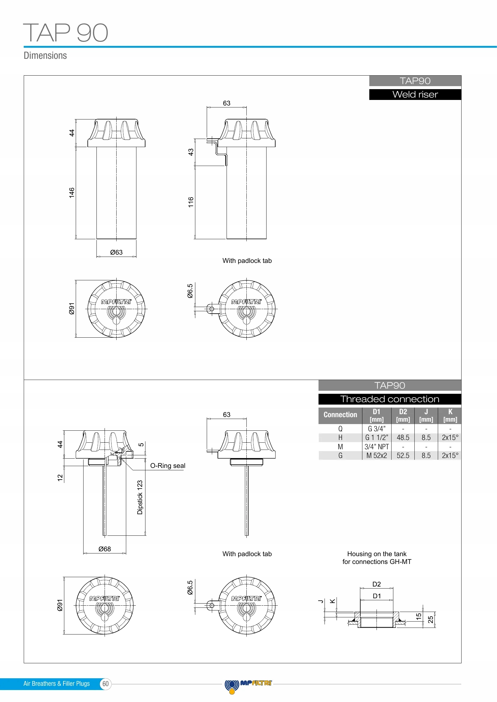 Заливна пробка TAP90F10A001 - MP Filtri