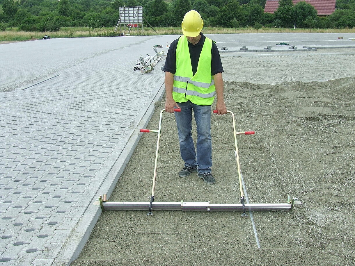 TELEPLAN TP - система ручного вирівнювання для малих і середніх поверхонь. Це особливо корисно під час вирівнювання твердого, утрамбованого піску або коли з боків робочої доріжки є перешкоди, напр. Алюмінієвий порожнистий профіль характеризується легкістю і міцністю.