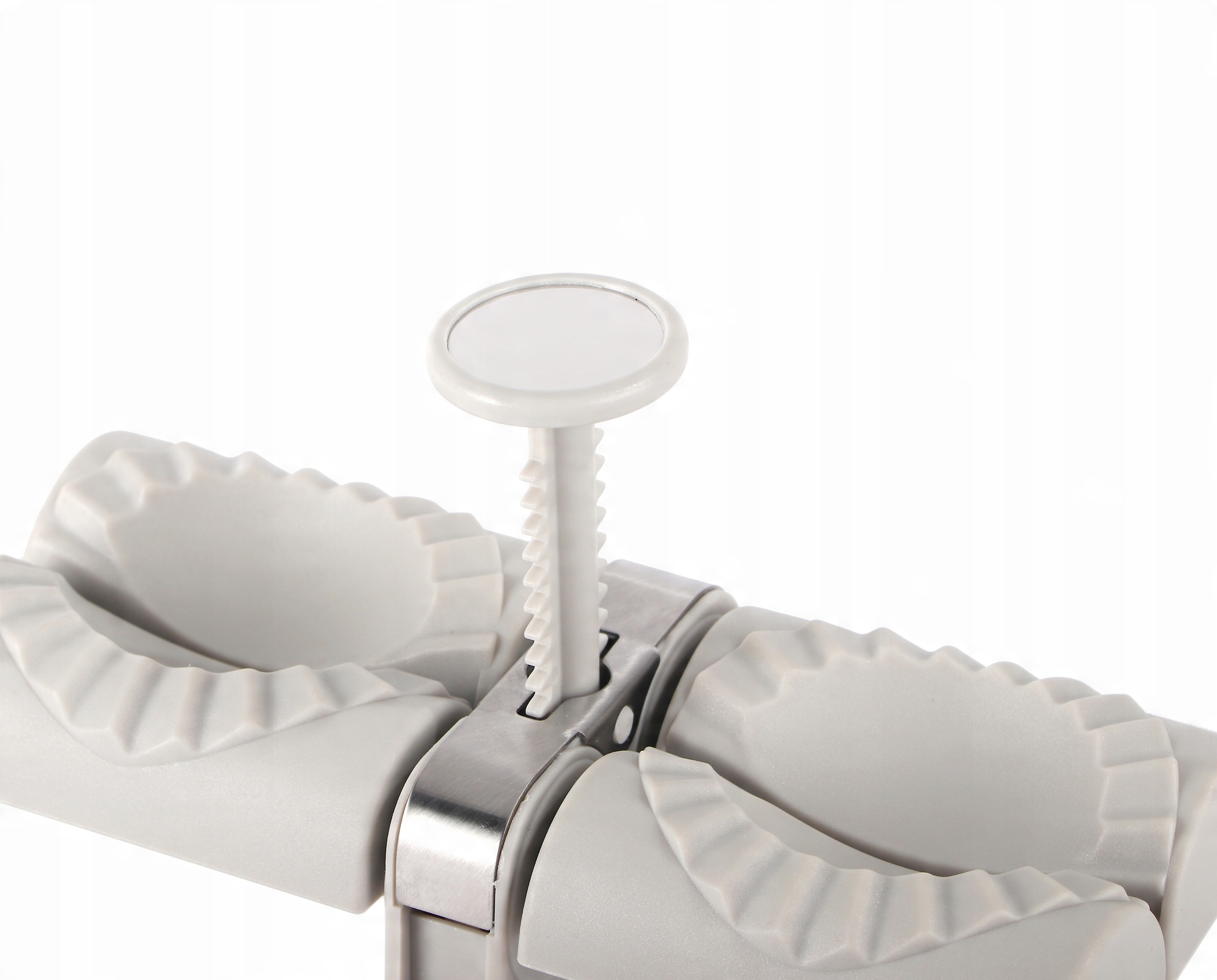 1. Натисніть кнопку. Покладіть плоске тісто для пельменів у дві форми. Нанесіть начинку і чистіть тісто водою . Натисніть на важіль, щоб підготувати два пельмені.