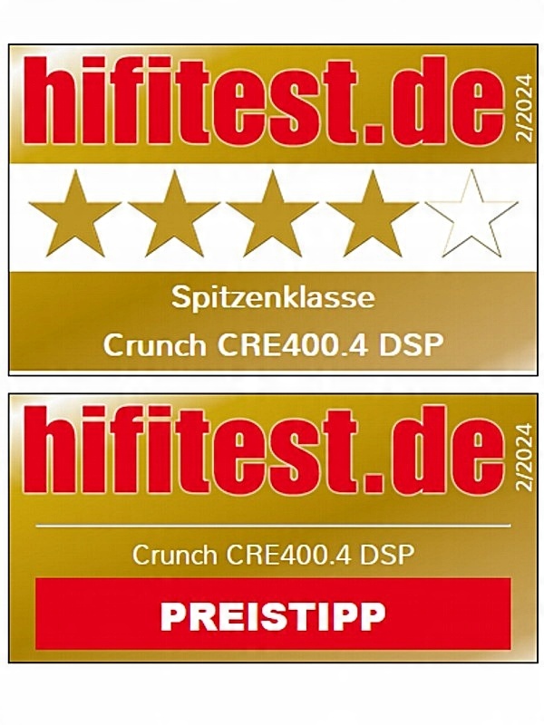 CRE400.4 DSP -це чотириканальний підсилювач автомобіля з процесором DSP, призначеним для початківців користувачів. У тесті німецького журналу Car & Hifi 2/2024 був класифікований до найвищого класу (Spitzenklasse)