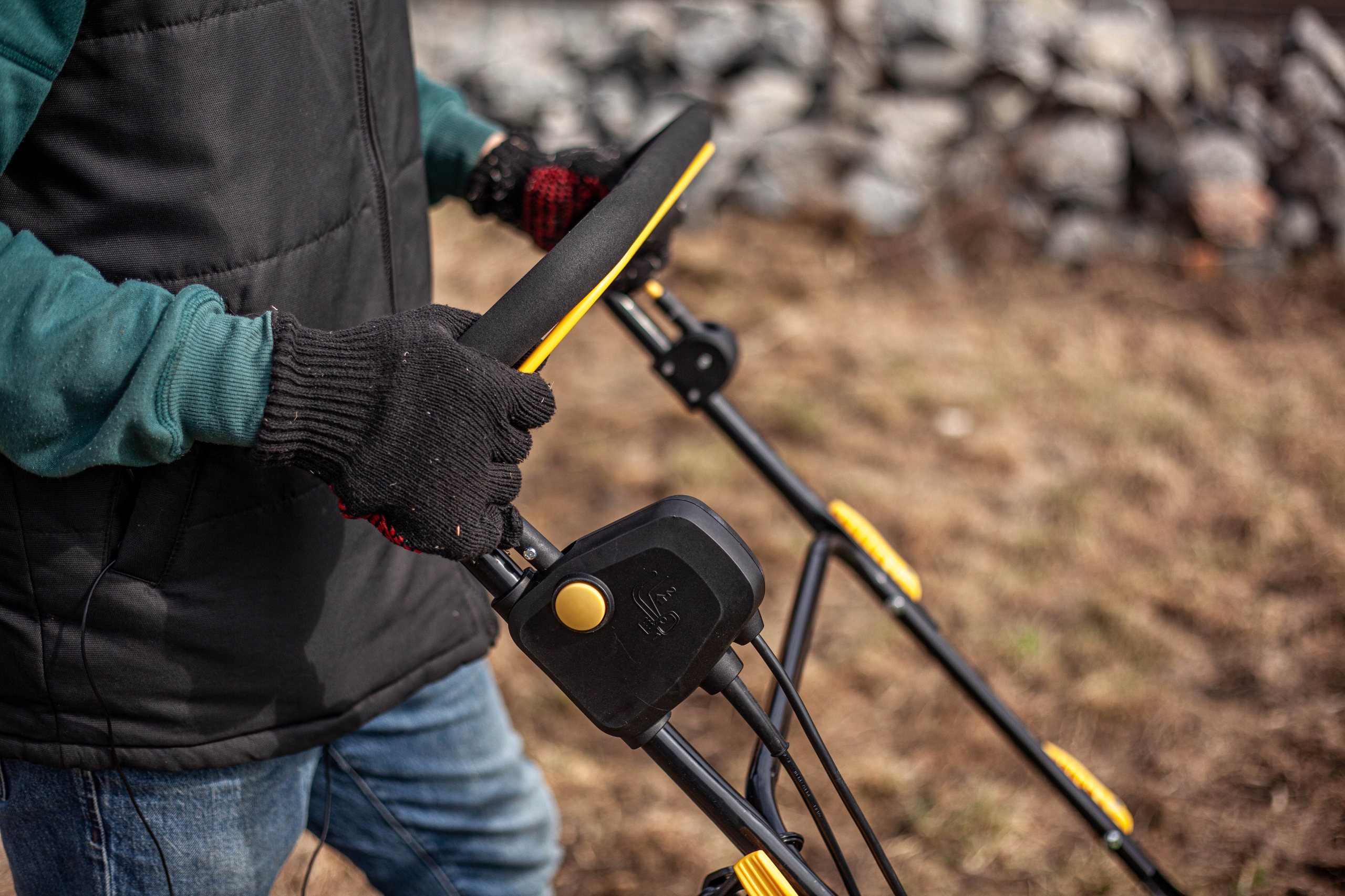Скардіфікатор простий у використанні навіть для проведення користувачів. Просто підключіть шнур живлення (розгинальний шнур надійно блокує в ручці), натисніть на захист і потягніть важіль злив до поручнів - скроміфікатор почнеться. Сервіс простий та зручний, що дозволяє швидко почати догляд за газоном. Варто зазначити, що ручка була покрита м'яким матеріалом і оснащена вигином, що дозволяє змінити положення рук під час роботи, зменшуючи їх стрес.