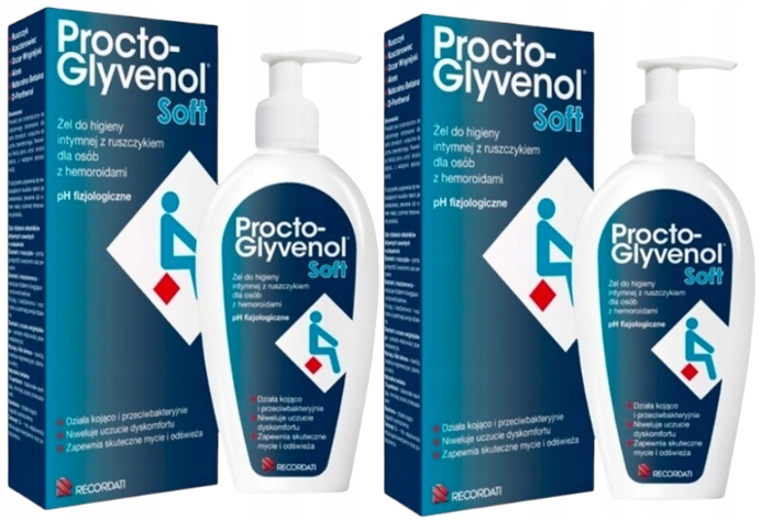 Procto-Glyvenol Soft гель для інтимної гігієни з віником м'ясника, призначений для людей з гемороєм, які повинні приймати спеціальні догляд за своєю гігієною та догляд за анальною областю. М’який гель Procto-Glyvenol Soft містить інгредієнти, які заспокоюють подразнення та усувають відчуття дискомфорту, спричинене запаленням.