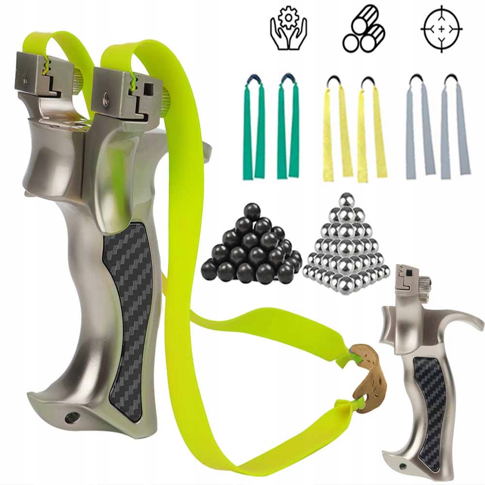 ⚫⚫⚫Набір рогаток: Ми підготували для вас найкращий набір. 1 х авіаційна алюмінієва рогатка, 100 сталевих кульок для рогатки, 300 глиняних кульок, 6 запасних гумок і 1 х інструкція з використання рогатки. Почніть свою гру з рогатки!
