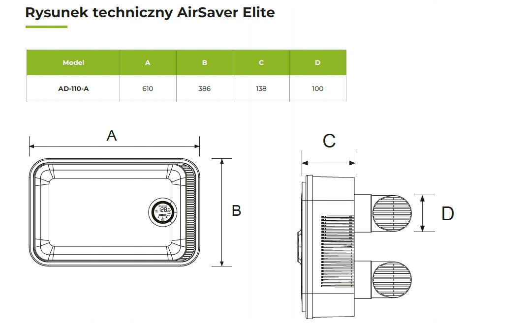 PRODMAX ELITE настінний рекуператор тепла 110м3/год PILOT 2x fi 100мм