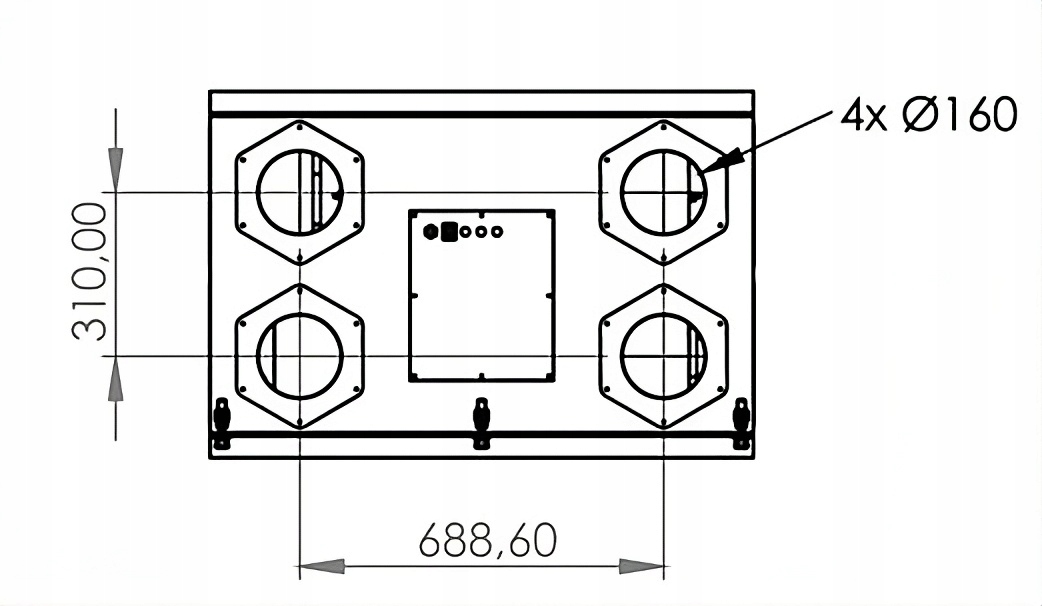 - Середнє. штуцери підключення повітря: Ø160 мм