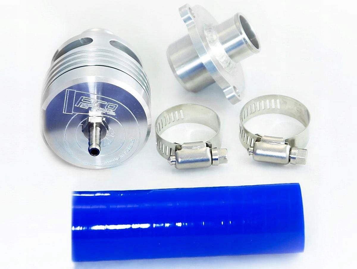Продувний клапан Properfekt + монтажний комплект. . Виріб являє собою професійний двопоршневий, атмосферний клапан. Завдяки використанню двох оптимально підібраних пружин, клапан не потребує обслуговування і не потребує налаштування на тиск 2,5 бар. Він ідеально підходить для так званого м'якого турбонаддуву і для високих наддувів. Корпус клапана виготовлений з полірованого алюмінію PA06 діаметром 60 мм, керуючий поршень діаметром 40 мм, другий ущільнювальний поршень виготовлений з тефлону. Забезпечує високу герметичність і надійність всього клапана.