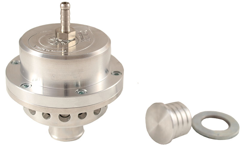 КОРПУС КЛАПАНА ВИГОТОВЛЕНО З ВИСОКОЯКІСНОГО ПОЛІРОВАННОГО АЛЮМІНІЮ PA06 З ДІАМЕТРОМ 80 мм. ПОРШЕНЬ КЕРУВАННЯ, ДІАМЕТР 50мм. ТАКИЙ ВЕЛИКИЙ ПОРШЕНЬ ДОЗВОЛЯЄ ВИКОРИСТОВУВАТИ ВІДНОСНО М'ЯКУ ПРУЖИНУ, ЩО ДАЄ ДУЖЕ ШВИДКУ РЕАКЦІЮ КЛАПАНА. ДРУГИЙ ПОРШЕНЬ, ВІДПОВІДАЛЬНИЙ ЗА ГЕРМЕТИЧНІСТЬ, ВИРОБЛЕНО З ТЕФЛОНУ, ЯКИЙ ЗАБЕЗПЕЧУЄ ВИСОКУ ГЕРМЕТИЧНІСТЬ ТА ПОПЕРЕДЖАЄ ЗАПИТАННЯ ПОВІТРЯ. МОНТАЖНИЙ ДІАМЕТР ФІТІНГУ 25 мм (30, 35 мм НА ЗАМОВЛЕННЯ).