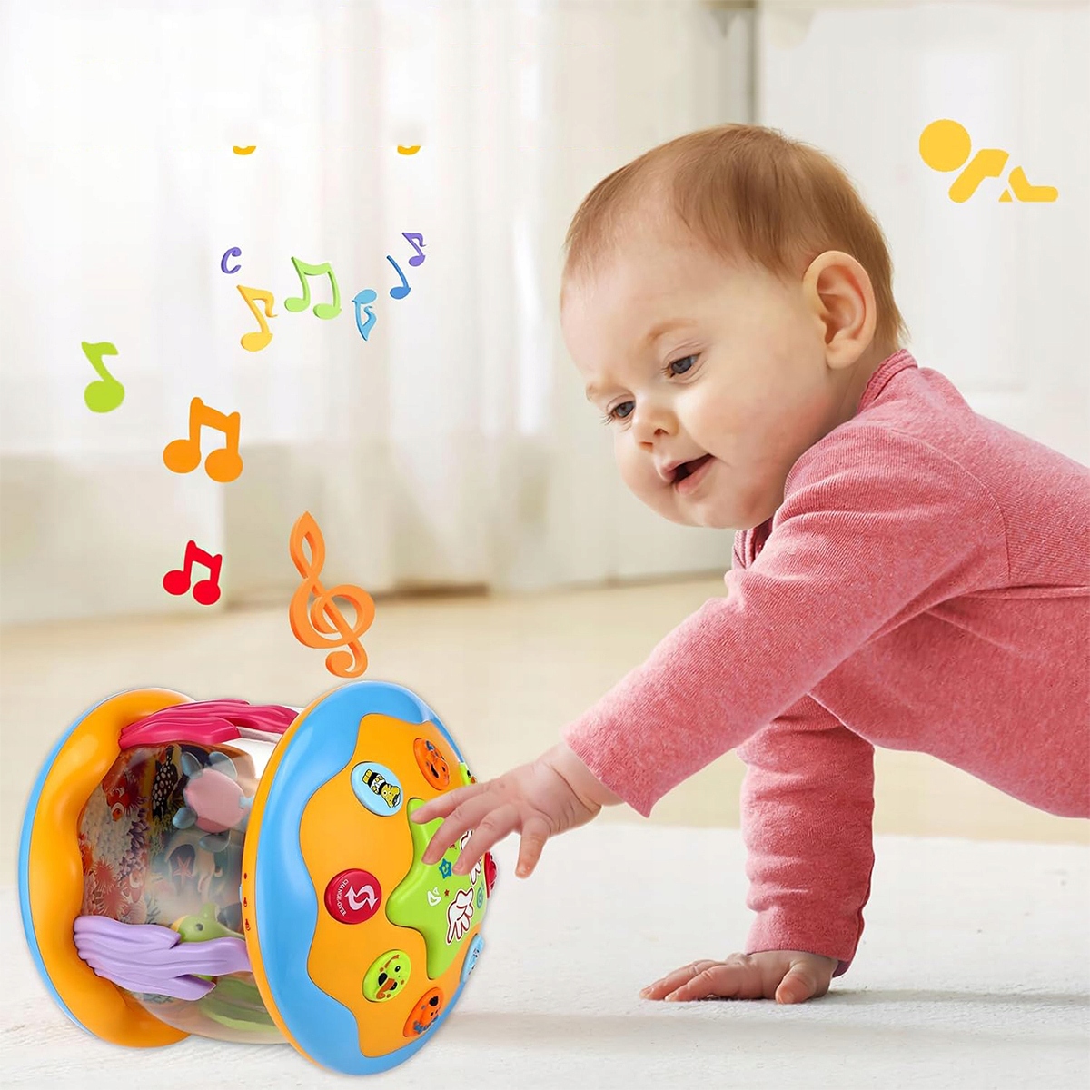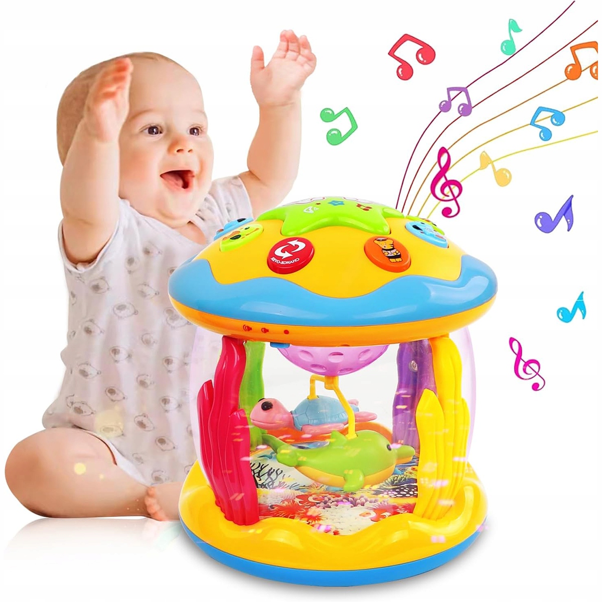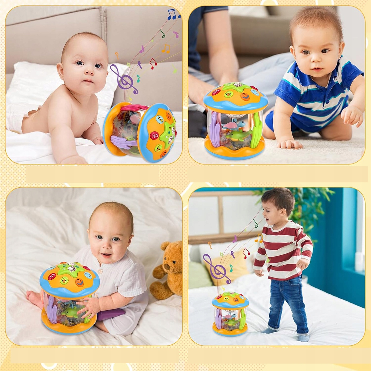 Дитячі музичні іграшки мають кнопку підсвічування у формі морської зірки вгорі, яка перемикає 8 різних режимів підсвічування. Дозвольте малюкам вільно плескати в долоні, а світло змінюватиметься, дозволяючи малюкам почуватися барабанщиками. Ця іграшка для дітей від 6 місяців пропонує 7 звуків тварин і 6 видів мелодій. Мелодії стимулюватимуть уяву вашої дитини.