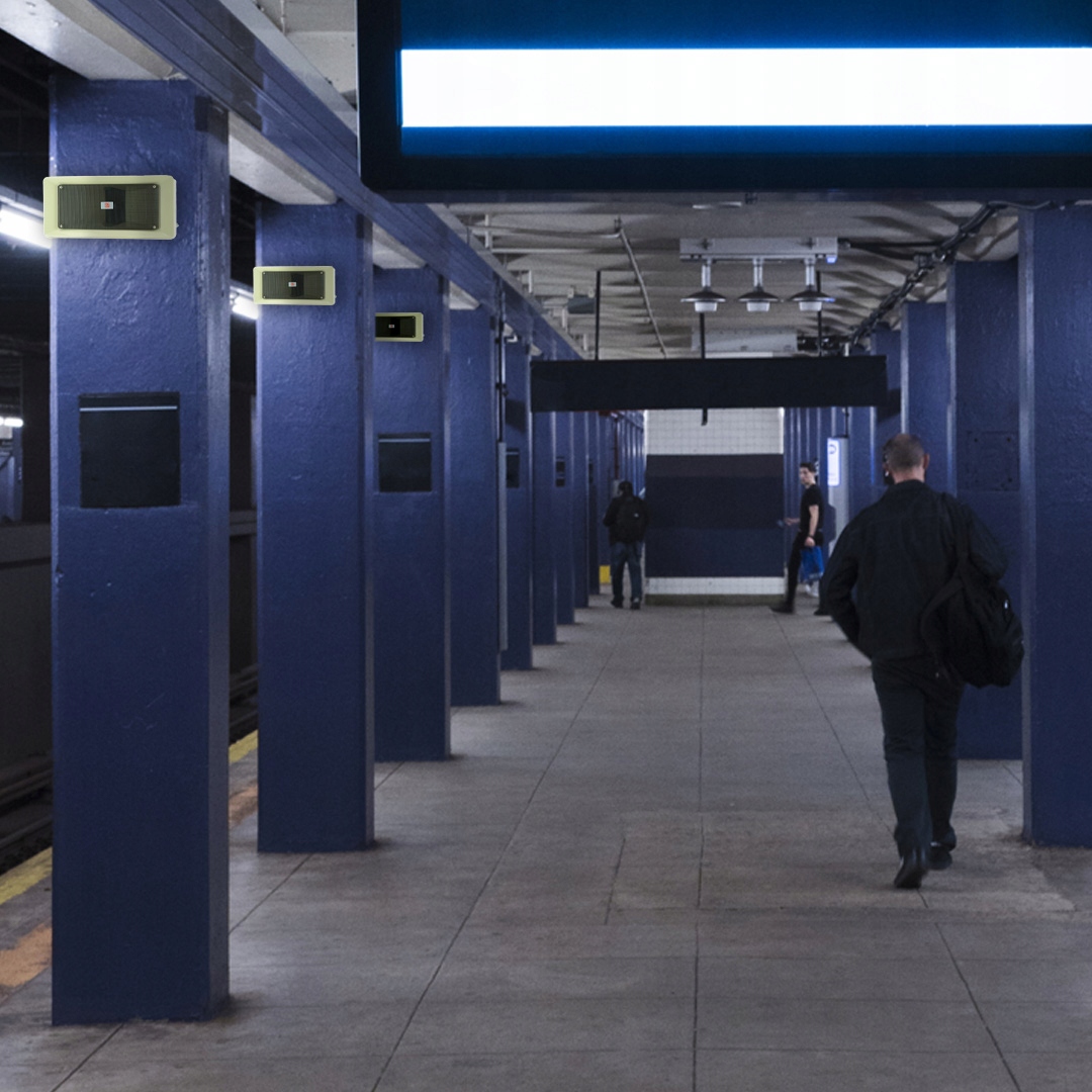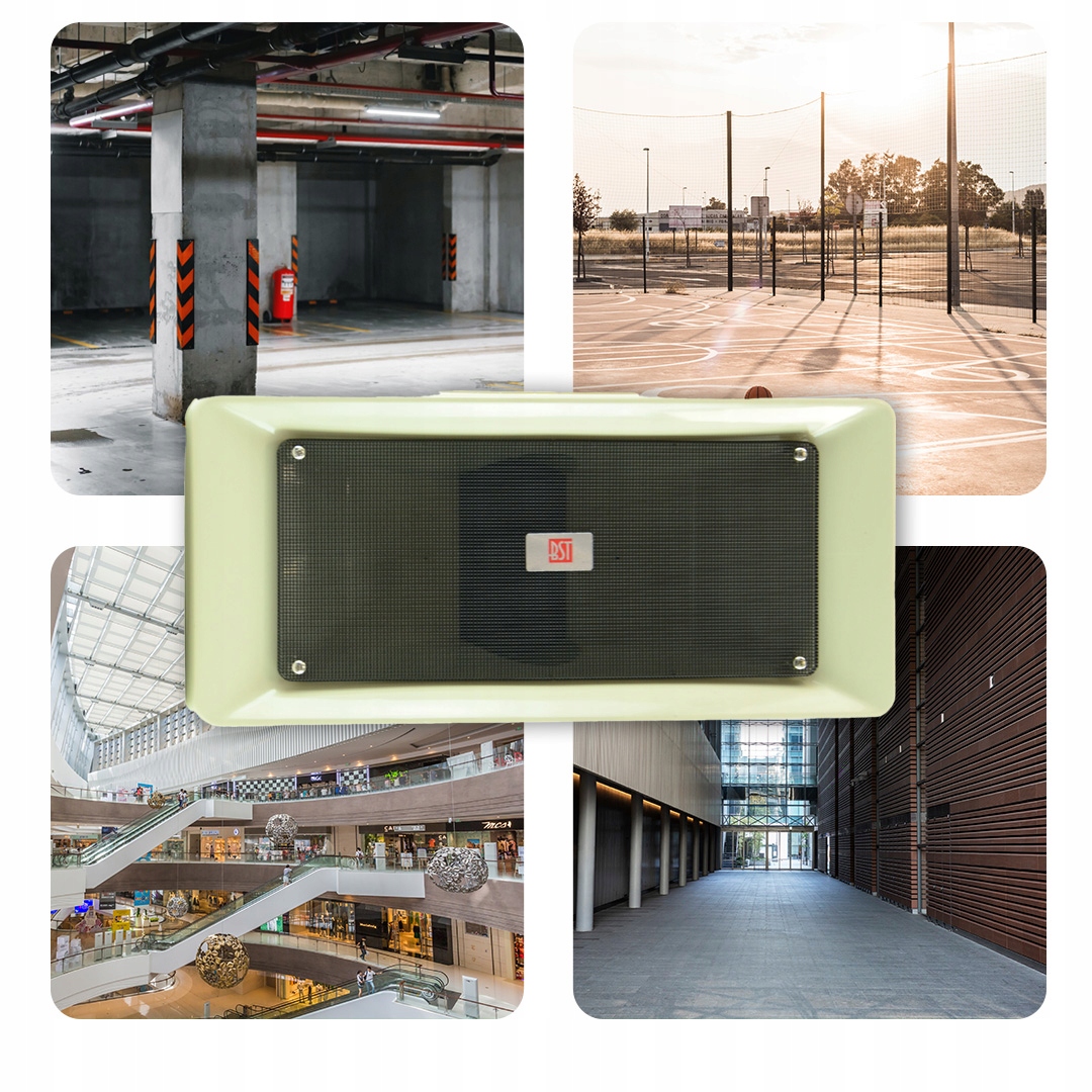 Основною перевагою цього звукового проектора є широкий кут випромінювання звуку 120° по горизонталі та 100° по вертикалі. Це означає, що звук широко поширений, охоплюючи великі площі та забезпечуючи рівномірне звукове покриття в просторі. Це ідеальне рішення для таких місць, як супермаркети, басейни, універмаги, виробничі цехи, залізничні станції, стоянки тощо.