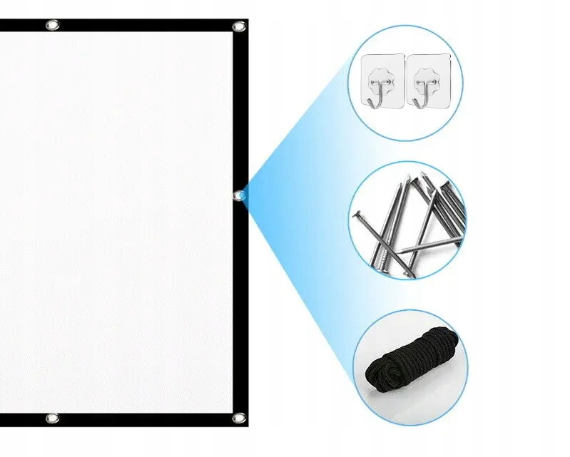 Екран має 10 отворів для кріплення. У набір входить 10 самоклеючих тримачів, які дозволяють легко та без проблем повісити екран на стіну чи іншу плоску поверхню. Кронштейни тонкі та прості у використанні.