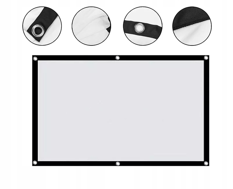 ✅Функціональний складаний проекційний екран. Ідеально підходить для дому, офісу чи вітальні. З нашим екраном ви можете створити повноцінний домашній кінотеатр всього за кілька секунд. Білосніжний колір і гладка фактура матеріалу дозволять вам використовувати весь потенціал вашого проекційного пристрою. Велика ширина та широкі кути відображення дозволять вам отримати найвищу якість та найбільше задоволення від фільму, який ви переглядаєте.