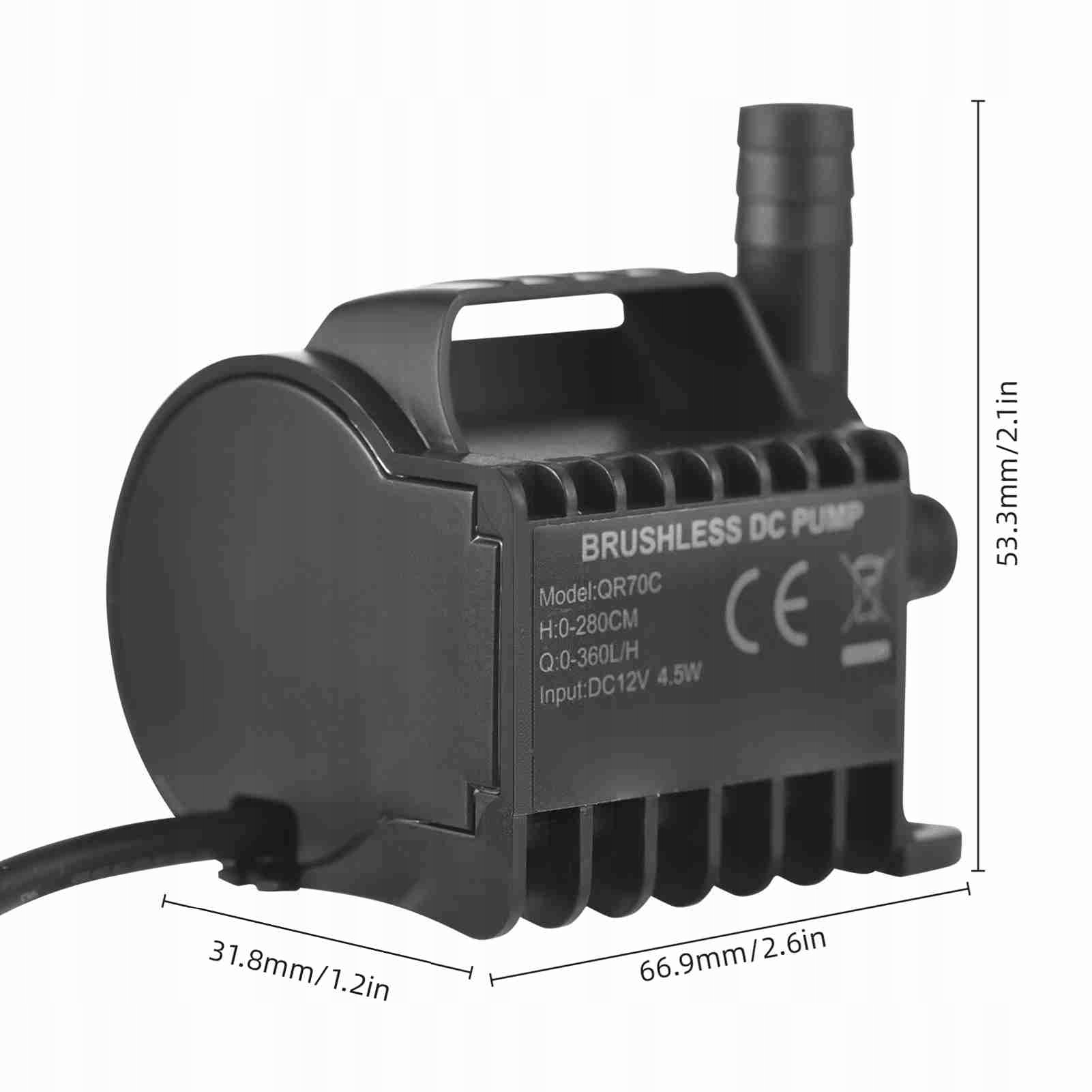 Функція: 1. 【сильна потужність і високий підйом】 Цей низький водяний насос з максимальною швидкістю потоку 360 л/год, максимальна висота підйому до 9,2 футів, максимальна потужність: 4,5 Вт. Номінальна напруга: 12 В. Зовнішній діаметр 9,5 мм впускний та водний розетк.
