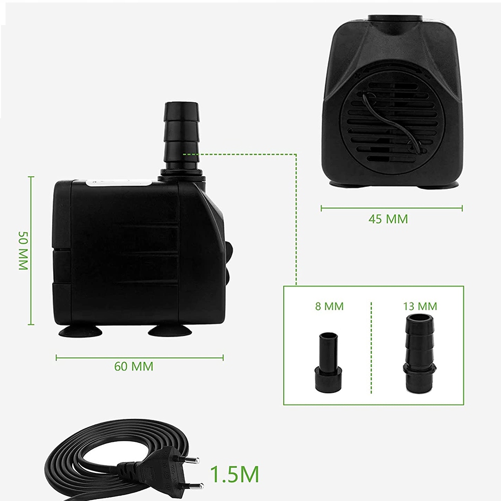 🌊 Мовчазний глибокий -SEA насос протягом 10 Вт акваріум, водяний насос + насадка 8 мм + насадка 13 мм + кабель живлення 1,4 м європейські норми
