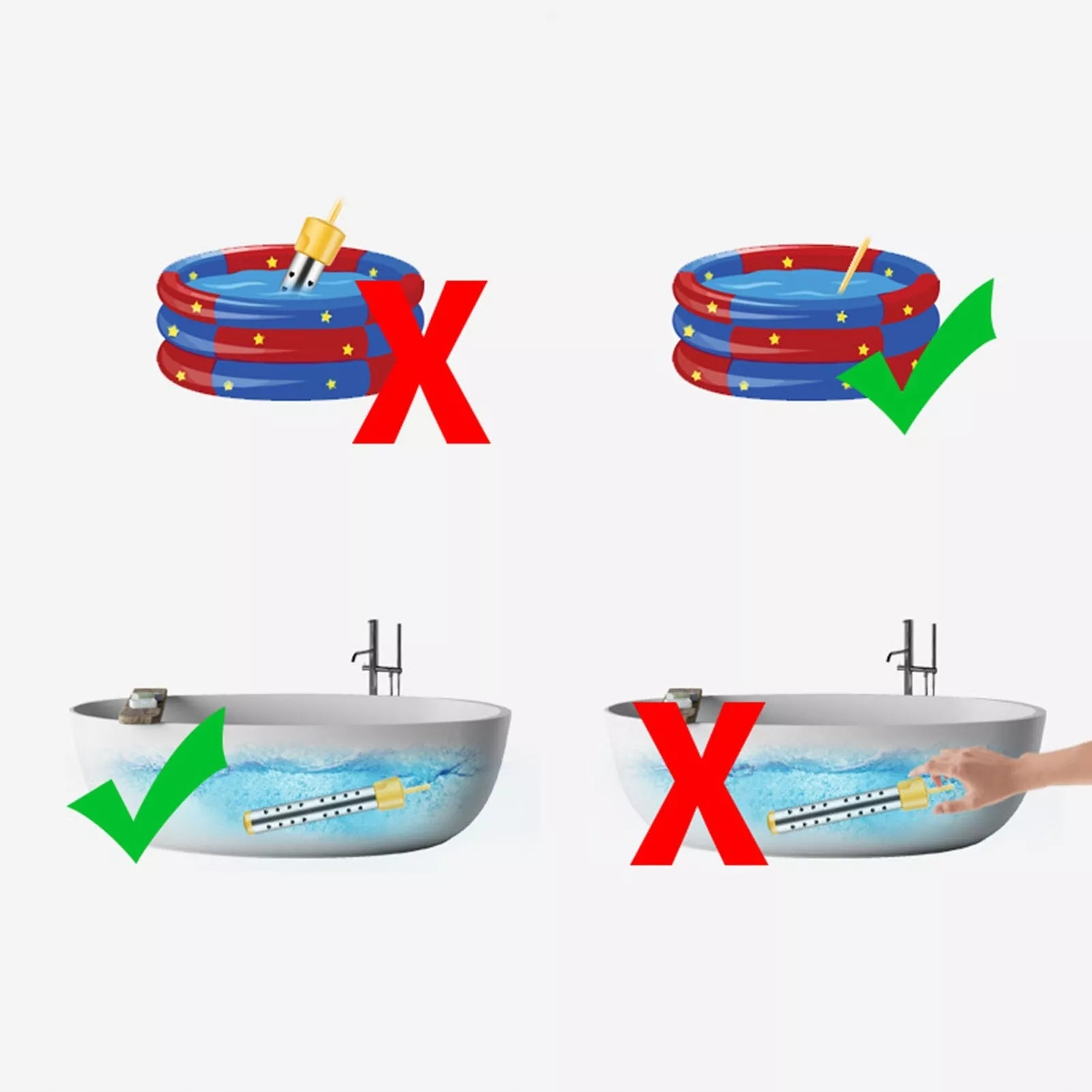 · індикатори: всі вони повинні бути розміщені у воді (включаючи кабелі), коли вони використовуються, а не для чайок, чашок, усіх контейнерів. Не торкайтеся, коли використовуйте! ·